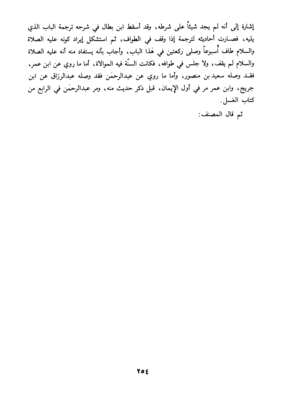 إشارة إلى أنه لم يجد شيئًا على شرطه، وقد أسقط ابن بطال في شرحه ترجمة الباب الذي يليه، فصارت أحاديثه لترجمة إذا وقف في الطواف، ثم استشكل إيراد كونه عليه الصلاة والسلام طاف أُسبوعًا وصلى ركعتين في هذا الباب، وأجاب بأنه يستفاد منه أنه عليه الصلاة والسلام لم يقف، ولا جلس في طوافه، فكانت السنّة فيه الموالاة، أما ما روي عن ابن عمر، فقد وصله سعيد بن منصور، وأما ما روي عن عبد الرحمن فقد وصله عبد الرزاق عن ابن جريج، وابن عمر مرَّ في أول الإيمان, قبل ذكر حديث منه، ومرَّ عبد الرحمن في الرابع من كتاب الغسل.