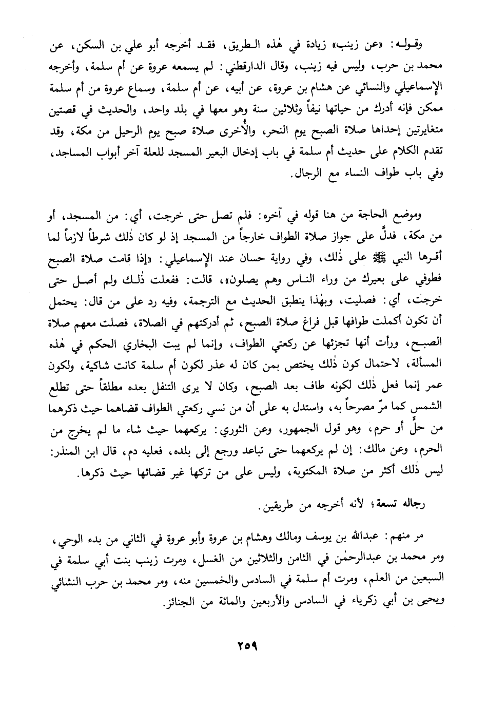 وقوله: "عن زينب" زيادة في هذه الطريق، فقد أخرجه أبو علي بن السكن، عن محمد بن حرب، وليس فيه زينب، وقال الدارقطني: لم يسمعه عروة عن أم سلمة، وأخرجه الإسماعيلي والنسائي عن هشام بن عروة، عن أبيه، عن أم سلمة، وسماع عروة من أم سلمة ممكن فإنه أدرك من حياتها نيفًا وثلاثين سنة وهو معها في بلد واحد، والحديث في قصتين متغايرتين إحداها صلاة الصبح يوم النحر، والأُخرى صلاة صبح يوم الرحيل من مكة، وقد تقدم الكلام على حديث أم سلمة في باب إدخال البعير المسجد للعلة آخر أبواب المساجد، وفي باب طواف النساء مع الرجال.
