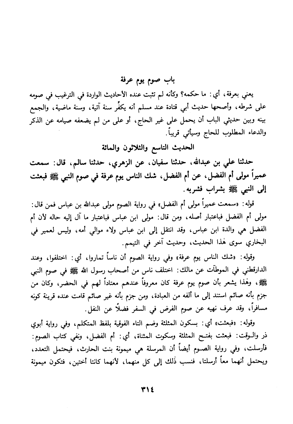 حَدَّثَنَا عَلِيُّ بْنُ عَبْدِ اللَّهِ، حَدَّثَنَا سُفْيَانُ، عَنِ الزُّهْرِيِّ، حَدَّثَنَا سَالِمٌ، قَالَ: سَمِعْتُ عُمَيْرًا مَوْلَى أُمِّ الْفَضْلِ، عَنْ أُمِّ الْفَضْلِ، شَكَّ النَّاسُ يَوْمَ عَرَفَةَ فِي صَوْمِ النَّبِيِّ -صلى الله عليه وسلم- فَبَعَثْتُ إِلَى النَّبِيِّ -صلى الله عليه وسلم- بِشَرَابٍ فَشَرِبَهُ.