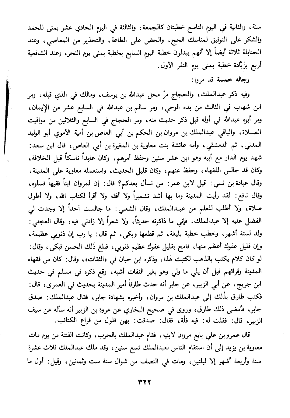 وفيه ذكر عبد الملك، والحجاج مرّ محل عبد الله بن يوسف، ومالك في الذي قبله، ومرَّ ابن شهاب في الثالث من بدء الوحي، ومرَّ سالم بن عبد الله في السابع عشر من الإيمان، ومرَّ أبوه عبد الله في أوله قبل ذكر حديث منه، ومرَّ الحجاج في السابع والثلاثين من مواقيت الصلاة، والباقي عبد الملك بن مروان بن الحكم بن أبي العاص بن أمية الأموي أبو الوليد المدني، ثم الدمشقي، وأمه عائشة بنت معاوية بن المغيرة بن أبي العاص، قال ابن سعد: شهد يوم الدار مع أبيه وهو ابن عشر سنين وحفظ أمرهم، وكان عابدًا ناسكًا قبل الخلافة، وكان قد جالس الفقهاء، وحفظ عنهم، وكان قليل الحديث، واستعمله معاوية على المدينة، وقال عبادة بن نسي: قيل لابن عمر: من نسأل بعدكم؟ قال: إن لمروان ابنًا فقيهًا فسلوه، وقال نافع: لقد رأيت المدينة وما بها أشد تشميرًا ولا أفقه ولا أقرأ لكتاب الله، ولا أطول صلاة، ولا أطلب للعلم من عبد الملك، وقال الشعبي: ما جالست أحدًا إلا وجدت لي الفضل عليه إلا عبد الملك، فإني ما ذاكرته حديثًا، ولا شعرًا إلا زادني فيه، وقال العجلي: ولد لستة أشهر، وخطب خطبة بليغة، ثم قطعها وبكى، ثم قال: يا رب إن ذنوبي عظيمة، وإن قليل عفوك أعظم منها، فامح بقليل عفوك عظيم ذنوبي، فبلغ ذلك الحسن فبكى، وقال: لو كان كلام يكتب بالذهب لكتبت هذا، وذكره ابن حبان في "الثقات"، وقال: كان من فقهاء المدينة وقرائهم قبل أن يلي ما ولي وهو بغير الثقات أشبه، وقع ذكره في مسلم في حديث ابن جريج، عن أبي الزبير، عن جابر أنه حدث طارقًا أمير المدينة بحديث في العمرى، قال: فكتب طارق بذلك إلى عبد الملك بن مروان، وأخبره بشهادة جابر، فقال عبد الملك: صدق جابر، فأمضى ذلك طارق، وروى في صحيح البخاري عن عروة بن الزبير أنه سأله عن سيف الزبير، قال: فقلت له: فيه فلّة، فقال: صدقت: بهن فلول من قراع الكنائب.