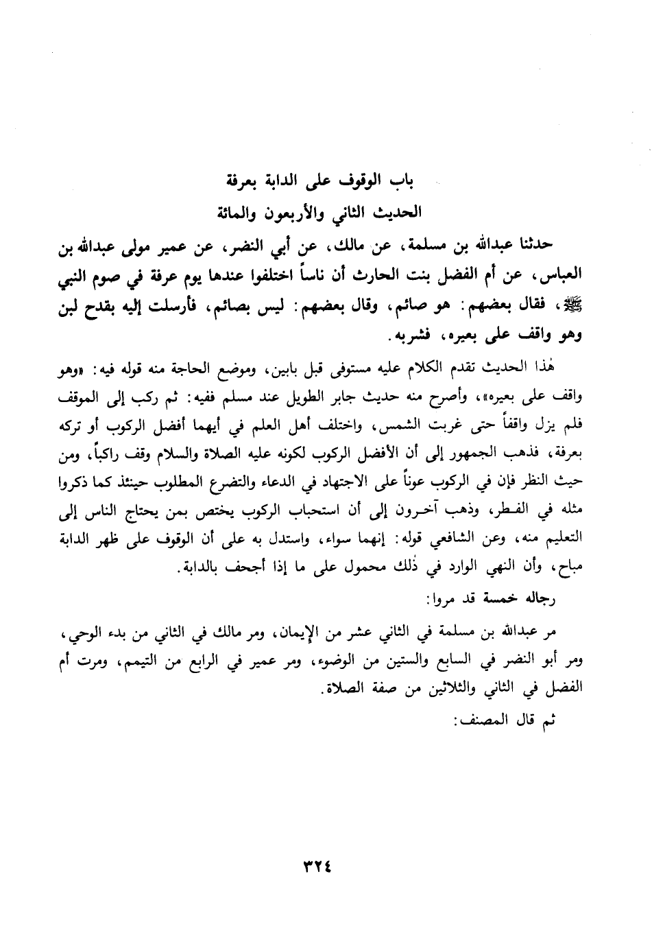 مرَّ عبد الله بن مسلمة في الثاني عشر من الإيمان، ومرَّ مالك في الثاني من بدء الوحي، ومرَّ أبو النضر في السابع والستين من الوضوء، ومرَّ عمير في الرابع من التيمم، ومرت أم الفضل في الثاني والثلاثين من صفة الصلاة.