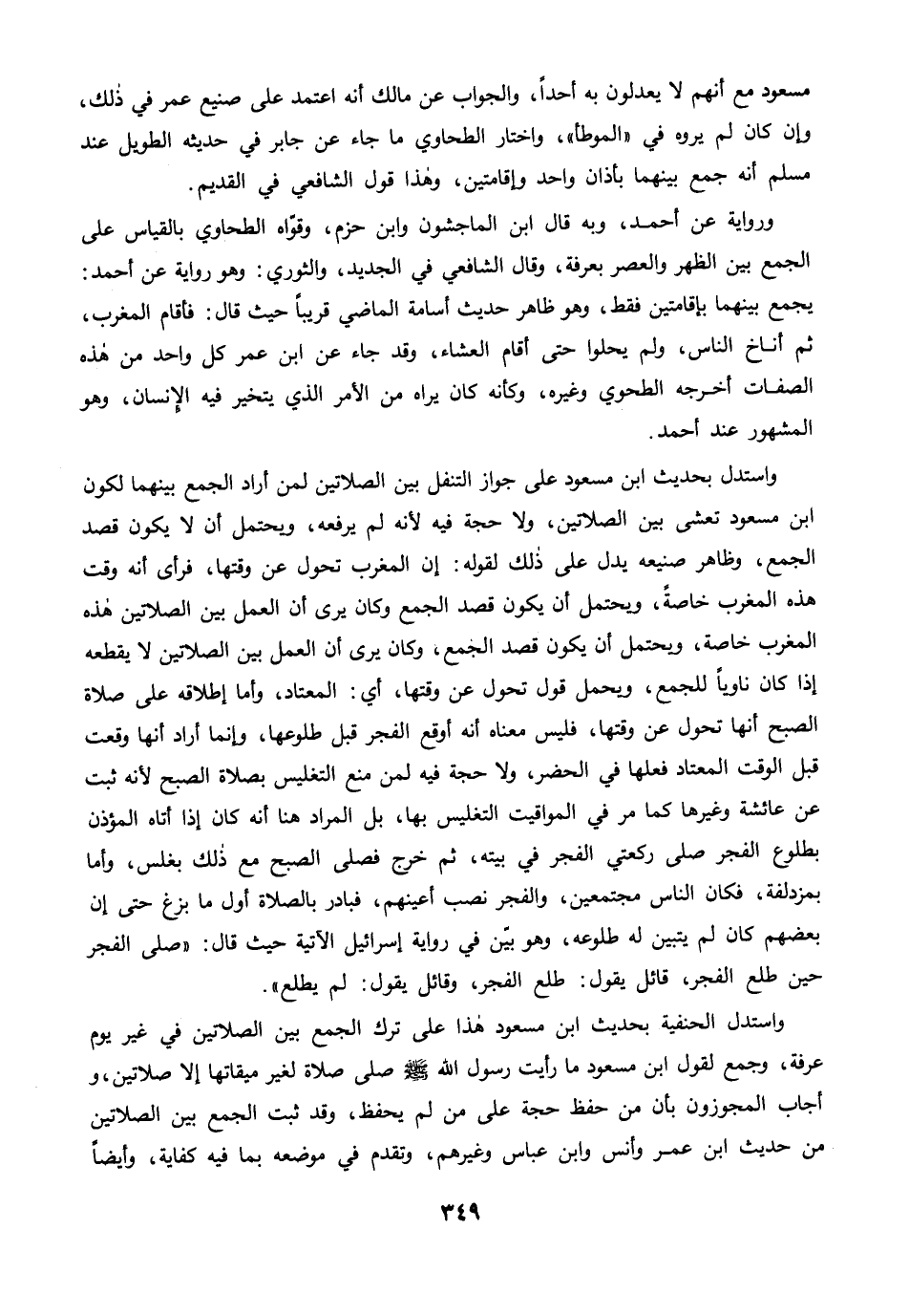 واستدل بحديث ابن مسعود على جواز التنفل بين الصلاتين لمن أراد الجمع بينهما لكون ابن مسعود تعشى بين الصلاتين، ولا حجة فيه لأنه لم يرفعه، ويحتمل أن لا يكون قصد الجمع، وظاهر صنيعه يدل على ذلك لقوله: إن المغرب تحول عن وقتها، فرأى أنه وقت هذه المغرب خاصةً، ويحتمل أن يكون قصد الجمع وكان يرى أن العمل بين الصلاتين هذه المغرب خاصة، ويحتمل أن يكون قصد الجمع، وكان يرى أن العمل بين الصلاتين لا يقطعه إذا كان ناويًا للجمع، ويحمل قول تحول عن وقتها، أي: المعتاد، وأما إطلاقه على صلاة الصبح أنها تحول عن وقتها، فليس معناه أنه أوقع الفجر قبل طلوعها، وإنما أراد أنها وقعت قبل الوقت المعتاد فعلها في الحضر، ولا حجة فيه لمن منع التغليس بصلاة الصبح لأنه ثبت عن عائشة وغيرها كما مرَّ في المواقيت التغليس بها، بل المراد هنا أنه كان إذا أتاه المؤذن بطلوع الفجر صلى ركعتي الفجر في بيته، ثم خرج فصلى الصبح مع ذلك بغلس، وأما بمزدلفة، فكان الناس مجتمعين، والفجر نصب أعينهم، فبادر بالصلاة أول ما بزغ حتى إن بعضهم كان لم يتبين له طلوعه، وهو بيّن في رواية إسرائيل الآتية حيث قال: "صلى الفجر حين طلع الفجر، قائل يقول: طلع الفجر، وقائل يقول: لم يطلع".