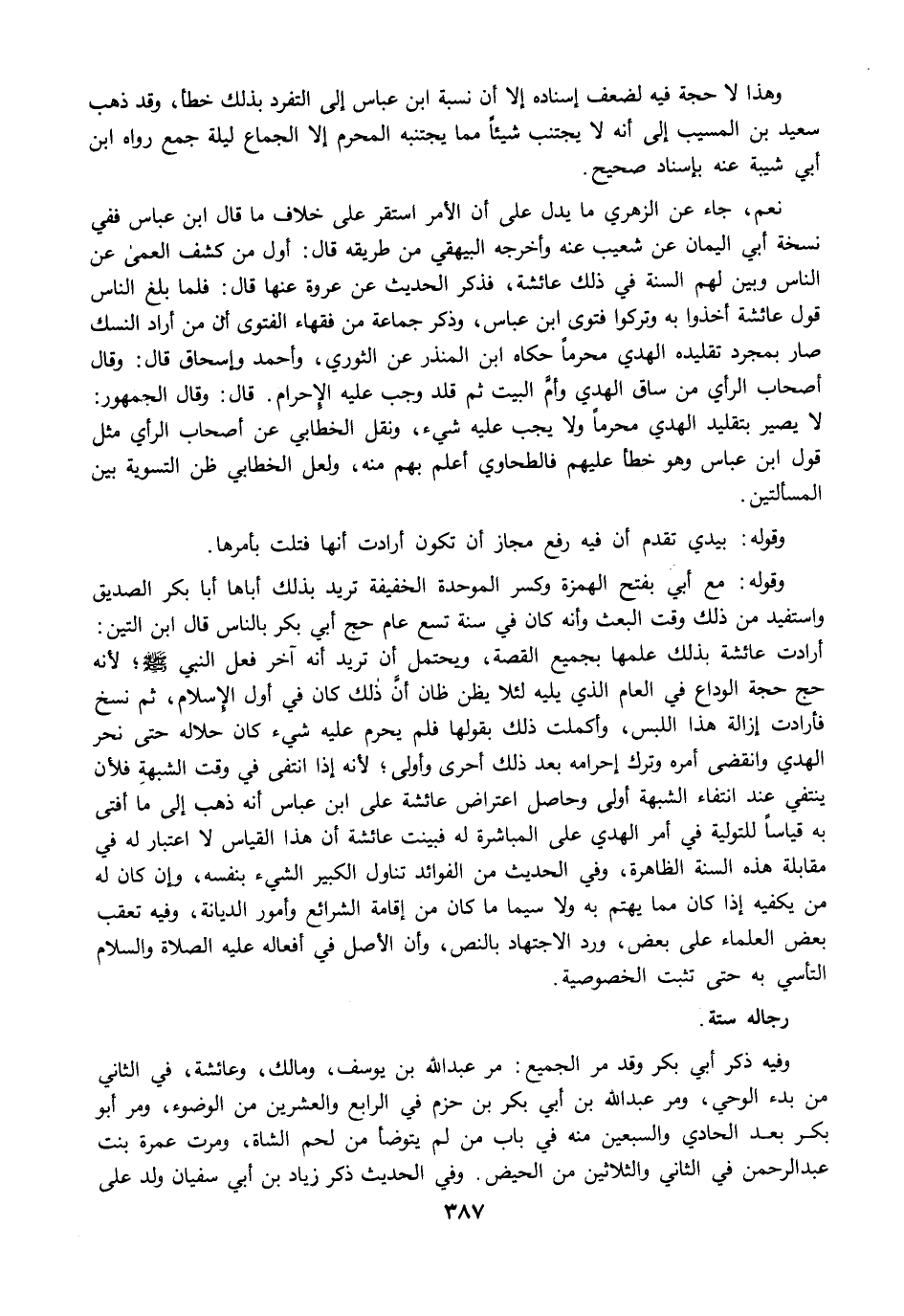 وفيه ذكر أبي بكر وقد مرَّ الجميع: مرَّ عبد الله بن يوسف، ومالك، وعائشة، في الثاني من بدء الوحي، ومرَّ عبد الله بن أبي بكر بن حزم في الرابع والعشرين من الوضوء، ومرَّ أبو بكر بعد الحادي والسبعين منه في باب من لم يتوضأ من لحم الشاة، ومرت عمرة بنت عبد الرحمن في الثاني والثلاثين من الحيض. وفي الحديث ذكر زياد بن أبي سفيان ولد على