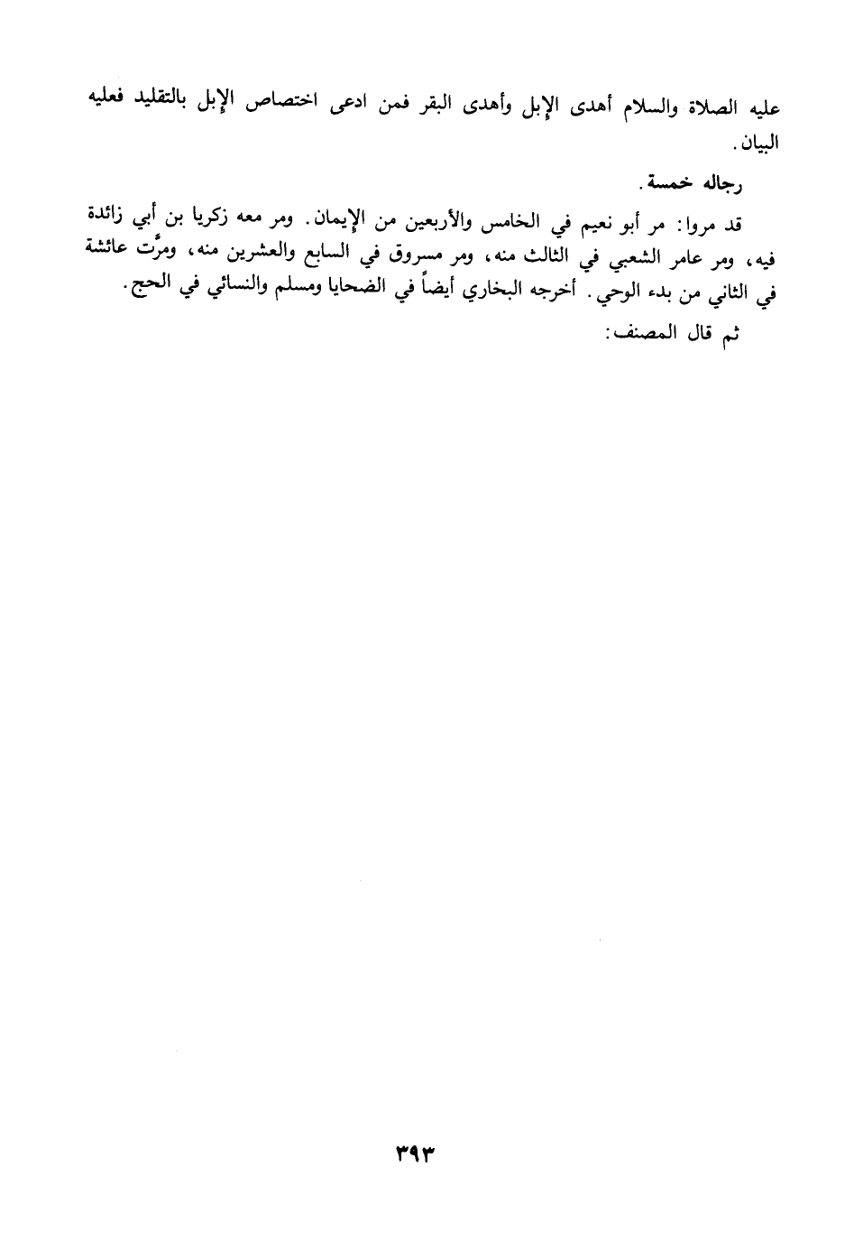 قد مرّوا: مرَّ أبو نعيم في الخامس والأربعين من الإيمان. ومرَّ معه زكريا بن أبي زائدة فيه، ومرَّ عامر الشعبي في الثالث منه، ومرَّ مسروق في السابع والعشرين منه، ومرت عائشة في الثاني من بدء الوحي. أخرجه البخاري أيضًا في الضحايا ومسلم والنسائي في الحج.