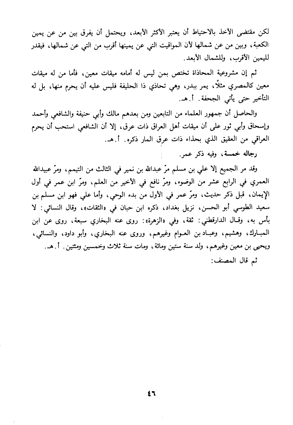 والحاصل أن جمهور العلماء من التابعين ومن بعدهم مالك وأبي حنيفة والشافعي وأحمد وإسحاق وأبي ثور على أن ميقات أهل العراق ذات عرق، إلا أن الشافعي استحب أن يحرم العراقي من العقيق الذي بحذاء ذات عرق المار ذكره. أ. هـ.