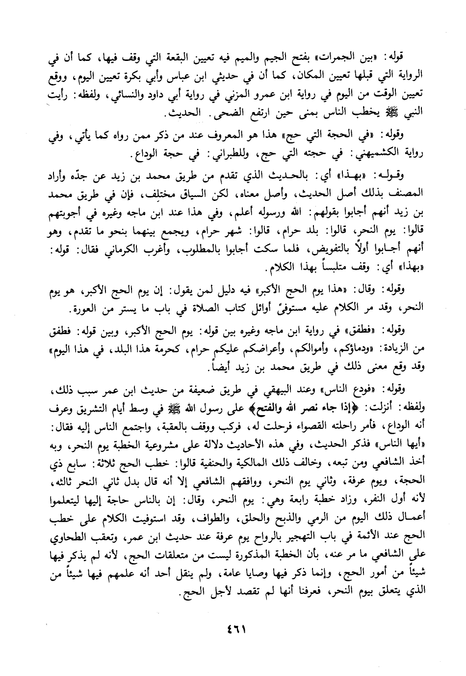 وقوله: وقال: "هذا يوم الحج الأكبر" فيه دليل لمن يقول: إن يوم الحج الأكبر، هو يوم النحر، وقد مرَّ الكلام عليه مستوفىً أوائل كتاب الصلاة في باب ما يستر من العورة.
