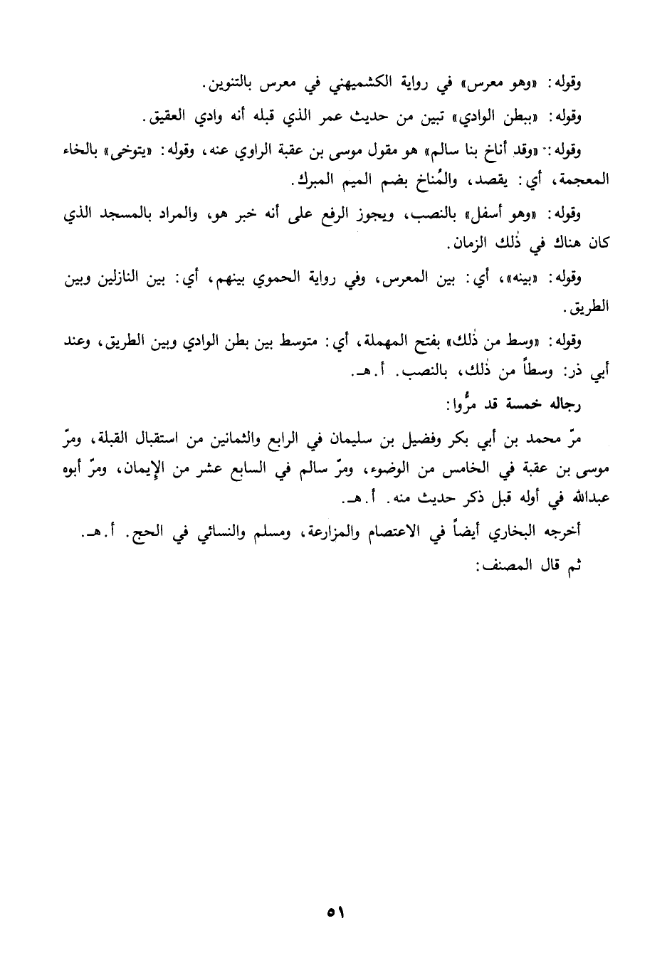 مرّ محمد بن أبي بكر وفضيل بن سليمان في الرابع والثمانين من استقبال القبلة، ومرّ موسى بن عقبة في الخامس من الوضوء، ومرّ سالم في السابع عشر من الإِيمان، ومرّ أبوه عبد الله في أوله قبل ذكر حديث منه. أ. هـ.