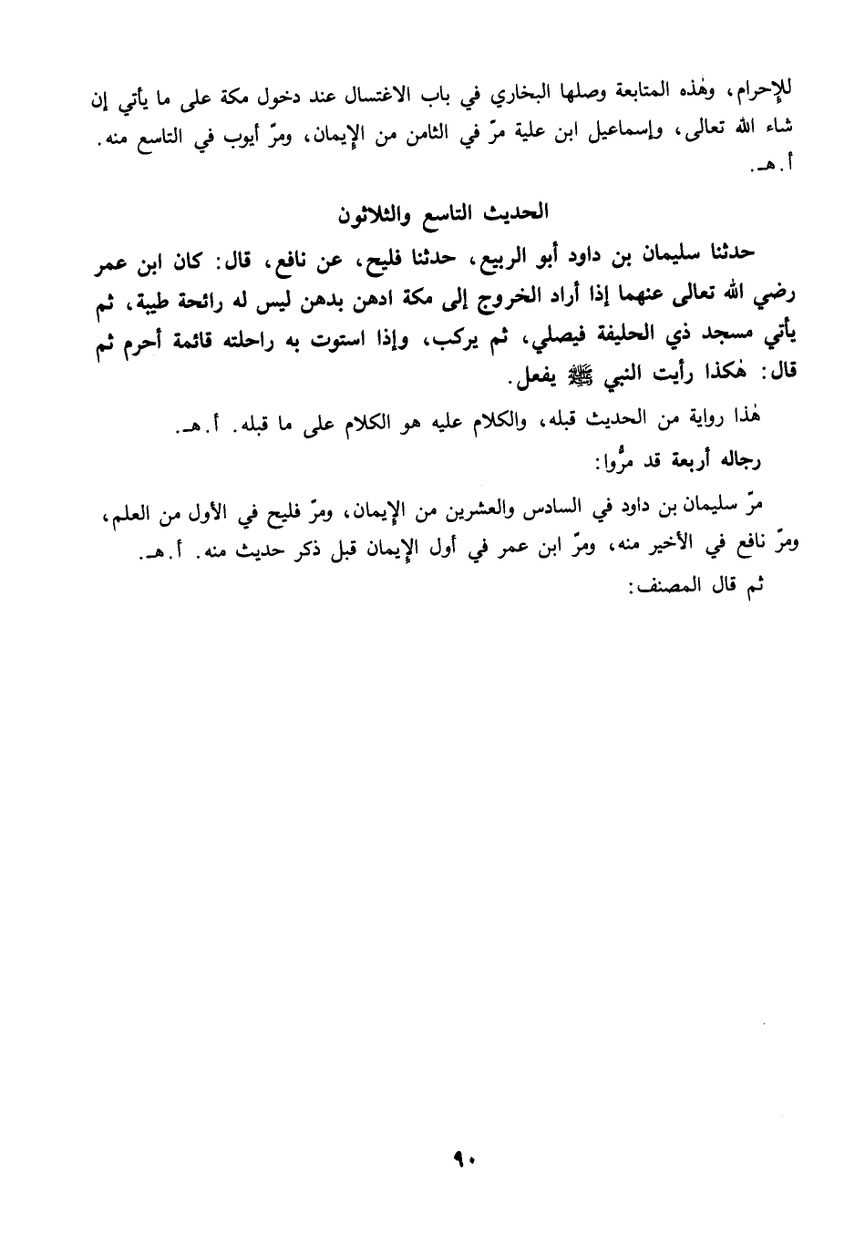 مرّ سليمان بن داود في السادس والعشرين من الإِيمان، ومرّ فليح في الأول من العلم، ومرّ نافع في الأخير منه، ومرّ ابن عمر في أول الإِيمان قبل ذكر حديث منه. أ. هـ.
