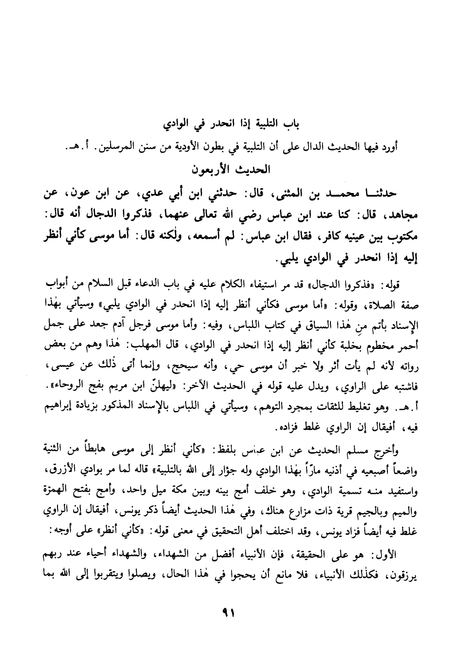 أورد فيها الحديث الدال على أن التلبية في بطون الأودية من سنن المرسلين. أ. هـ.