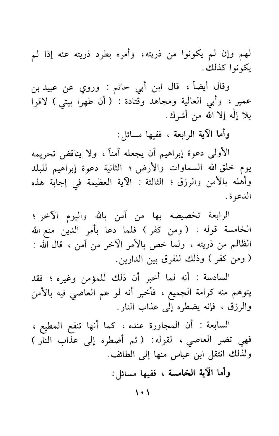 السابعة: أن المجاورة عنده كما أنها تنفع المطيع، فهي تضر العاصي، لقوله: {ثُمَّ أَضْطَرُّهُ إِلَى عَذَابِ النَّارِ} [سورة البقرة آية: 126] ، ولذلك انتقل ابن عباس منها إلى الطائف.