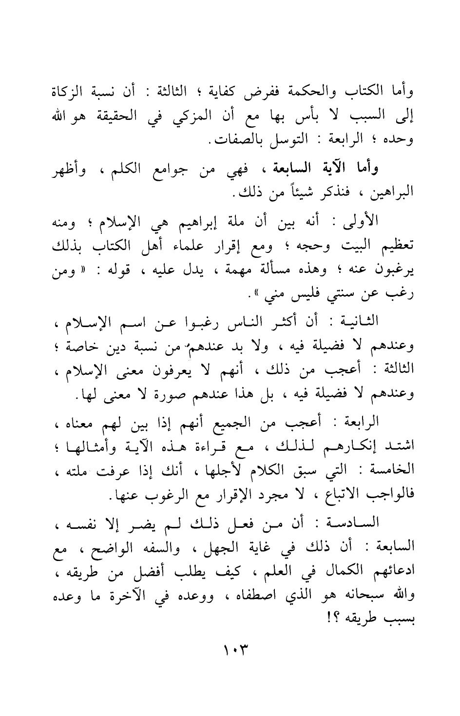 وأما الآية السابعة، فهي من جوامع الكلم، وأظهر البراهين، فنذكر شيئا من ذلك: