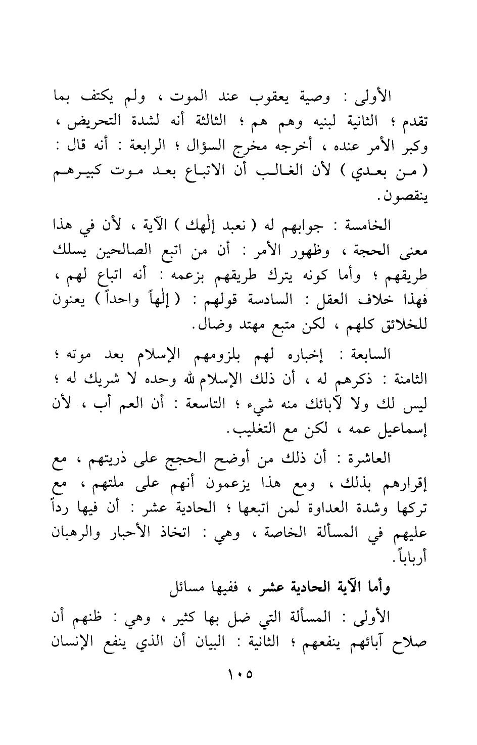 الحادية عشر: أن فيها ردا عليهم في المسألة الخاصة، وهي: اتخاذ الأحبار والرهبان أربابا.
