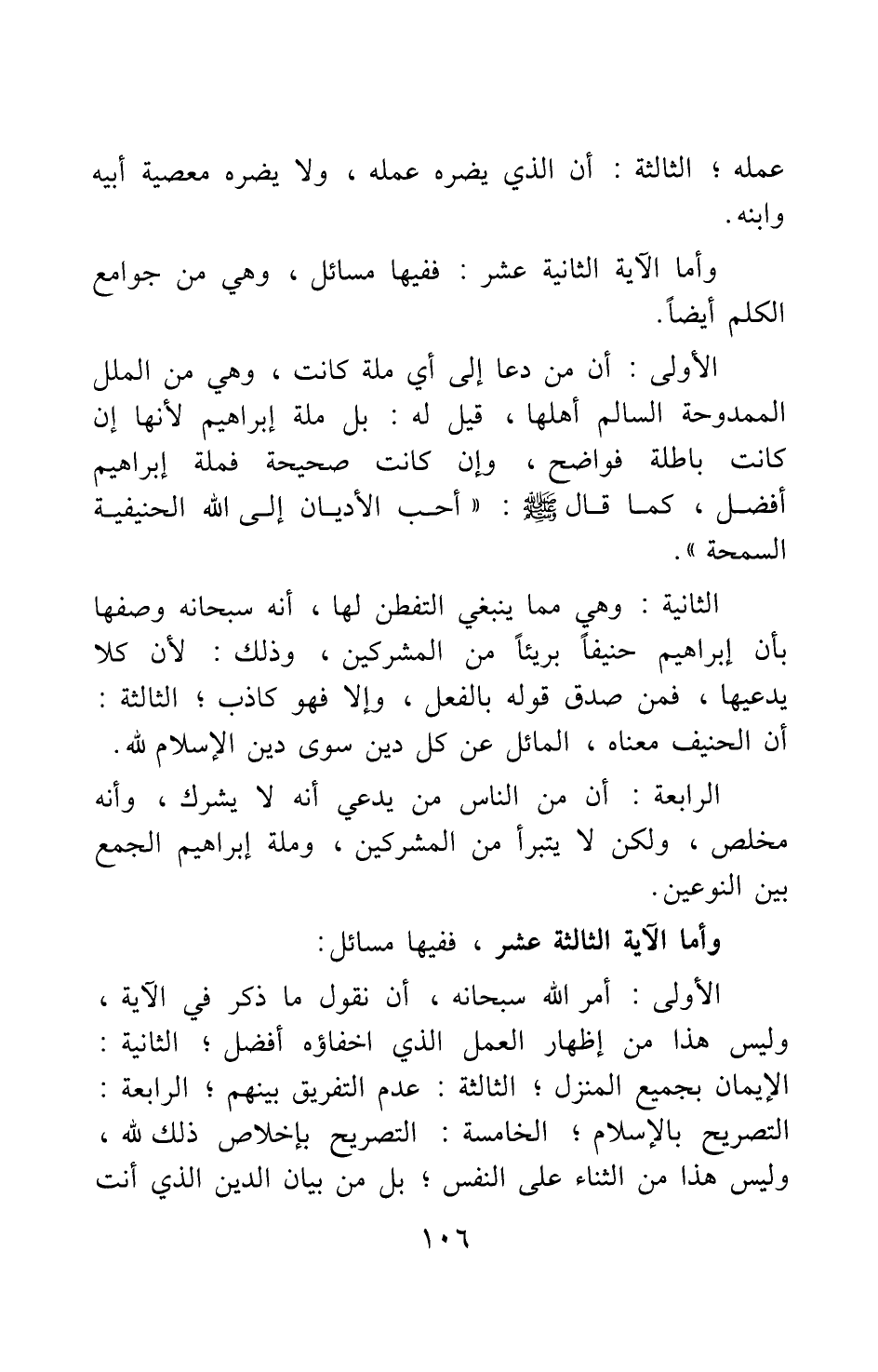 الأولى: أن من دعا إلى أي ملة كانت، وهي من الملل الممدوحة السالم أهلها، قيل له: بل ملة إبراهيم؛ لأنها إن كانت باطلة فواضح، وإن كانت صحيحة فملة إبراهيم أفضل، كما قال صلى الله عليه وسلم:" أحب الأديان إلى الله الحنيفية السمحة ".