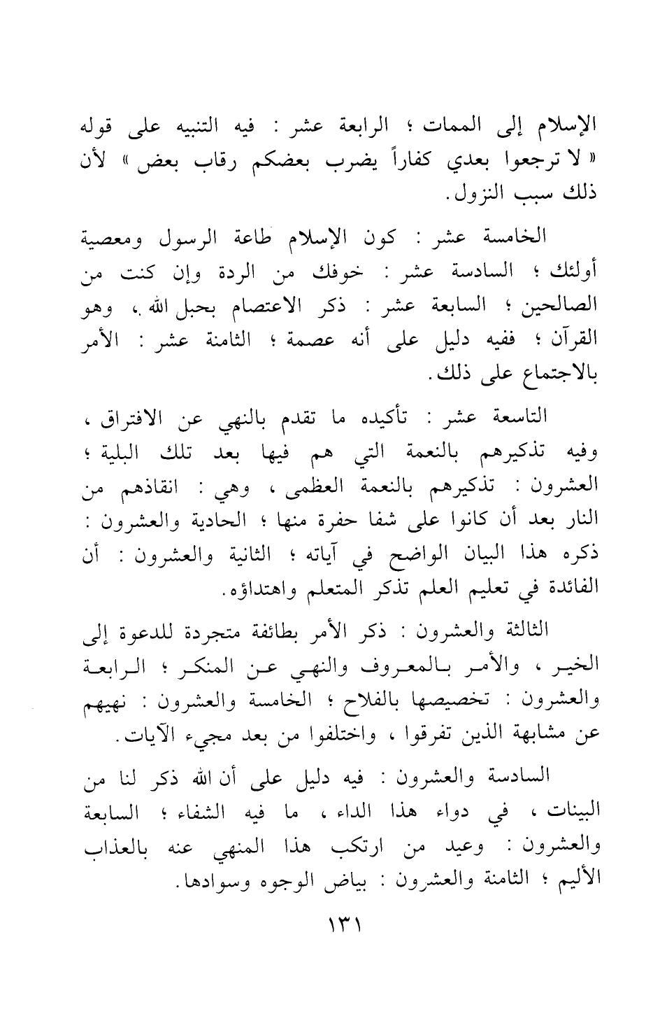 الرابعة عشر: فيه التنبيه على قوله: " لا ترجعوا بعدي كفارا يضرب بعضكم رقاب بعض " 1 لأن ذلك سبب النّزول.