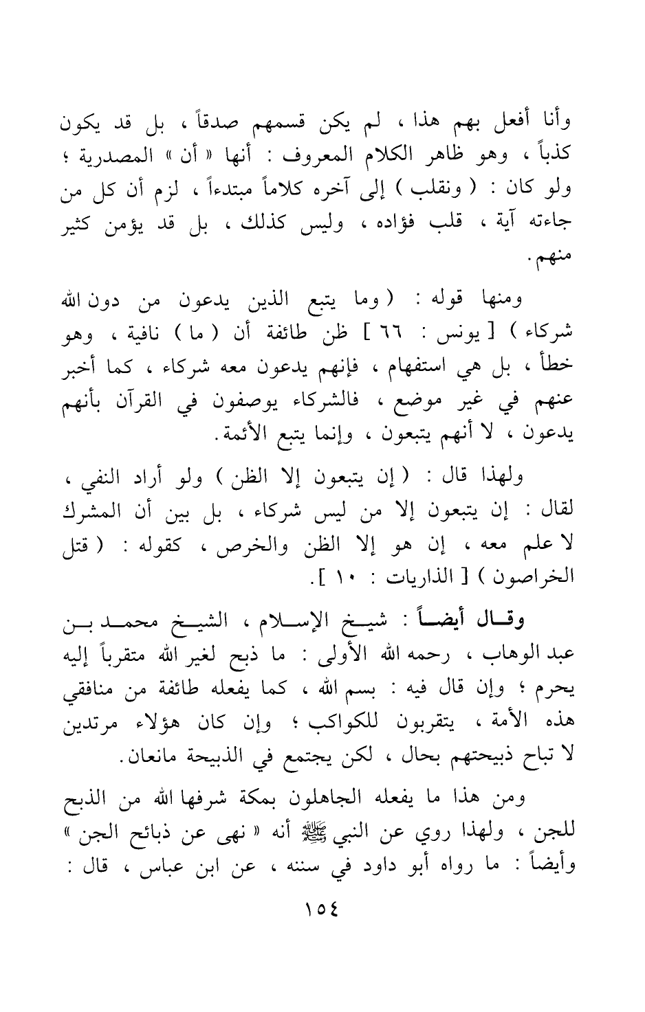 وقال أيضا شيخ الإسلام، الشيخ محمد بن عبد الوهاب، رحمه الله: الأولى: ما ذبح لغير الله متقربا إليه يحرم ; وإن قال فيه: بسم الله، كما يفعله طائفة من منافقي هذه الأمة، يتقربون للكواكب ; وإن كان هؤلاء مرتدين لا تباح ذبيحتهم بحال، لكن يجتمع في الذبيحة مانعان.