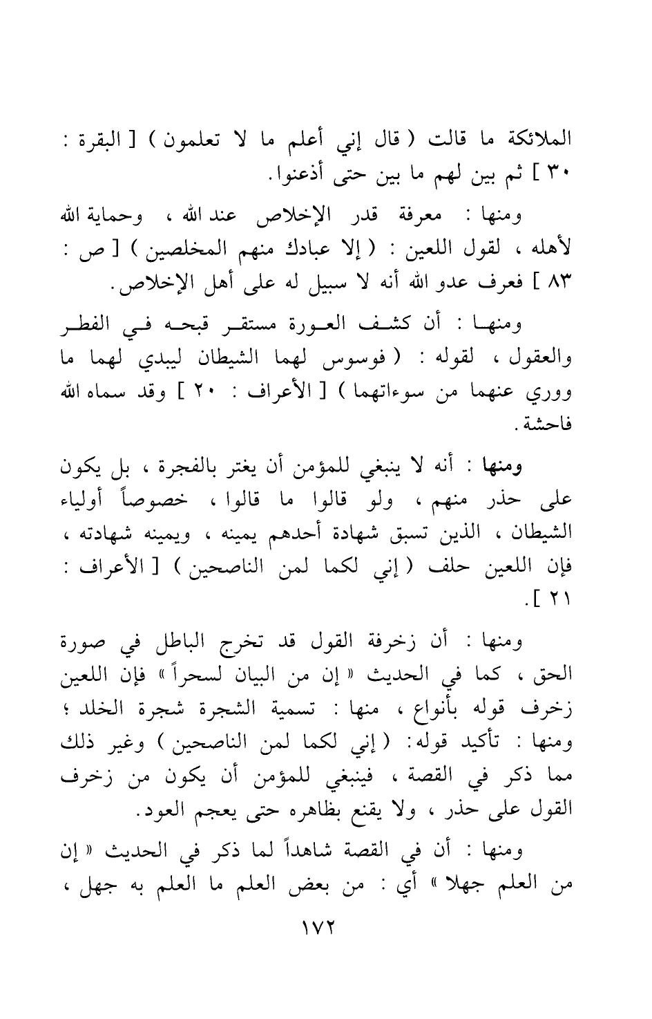 ومنها: أن زخرفة القول قد تخرج الباطل في صورة الحق، كما في الحديث: "إن من البيان لسحرا" فإن اللعين زخرف قوله بأنواع، منها: تسمية الشجرة شجرة الخلد.