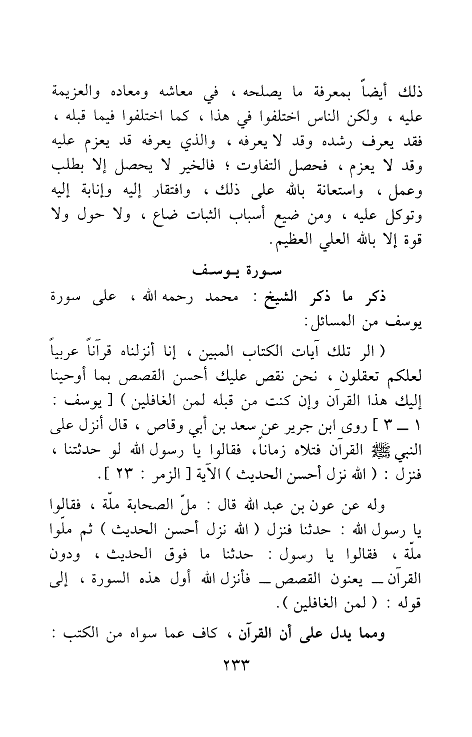 ذكر ما ذكر الشيخ محمد رحمه الله، على سورة يوسف من المسائل: