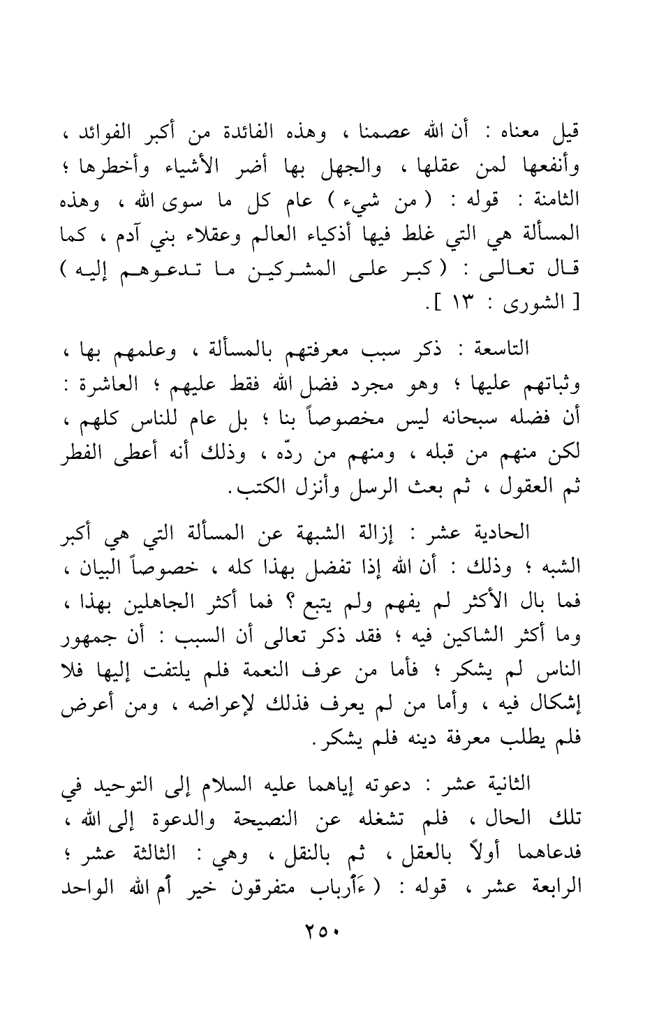 الثامنة: قوله: {مِنْ شَيْءٍ} عام كل ما سوى الله؛ وهذه المسألة هي التي غلط فيها أذكياء العالم وعقلاء بني آدم، كما قال تعالى: {كَبُرَ عَلَى الْمُشْرِكِينَ مَا تَدْعُوهُمْ إِلَيْهِ} [سورة الشورى آية: 13] .