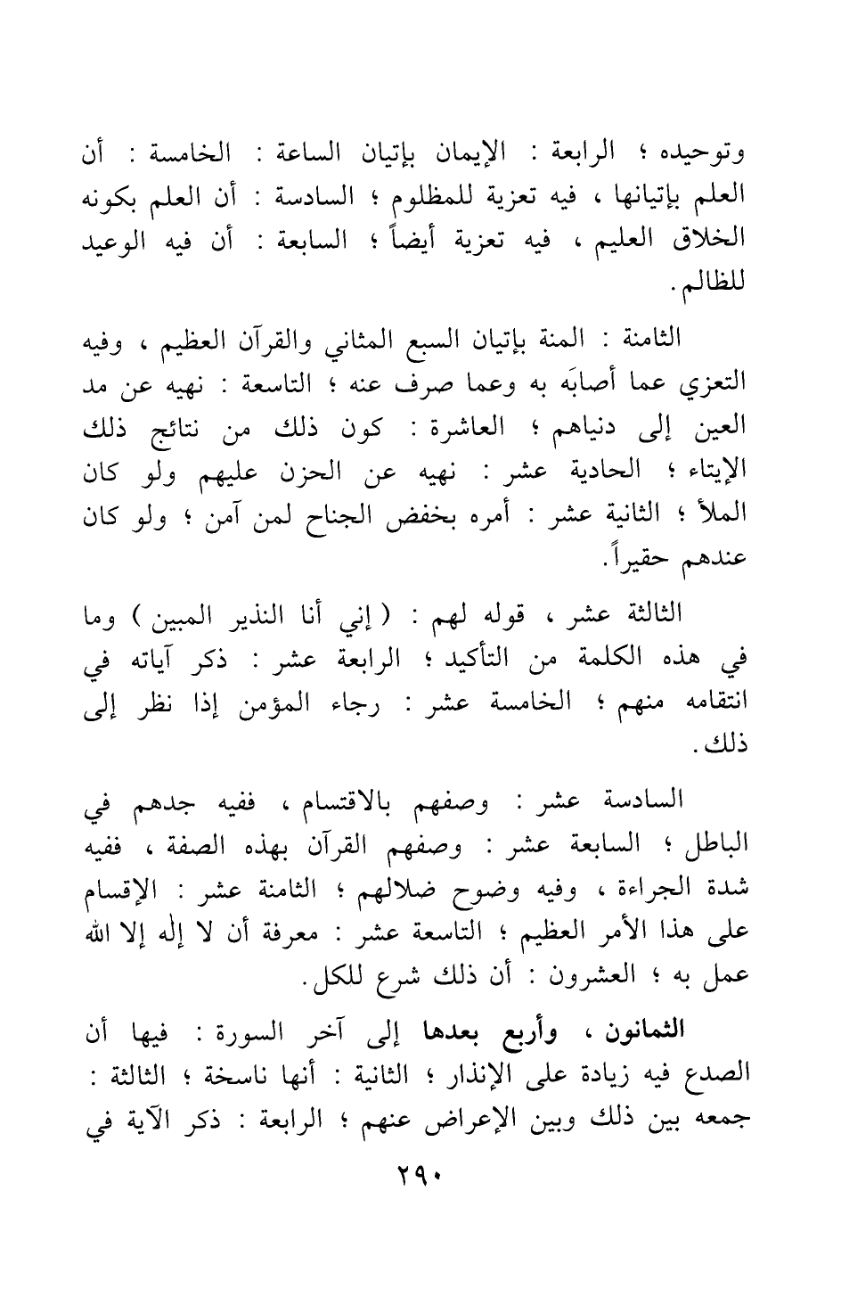 الخامسة عشر: رجاء المؤمن إذا نظر إلى ذلك.