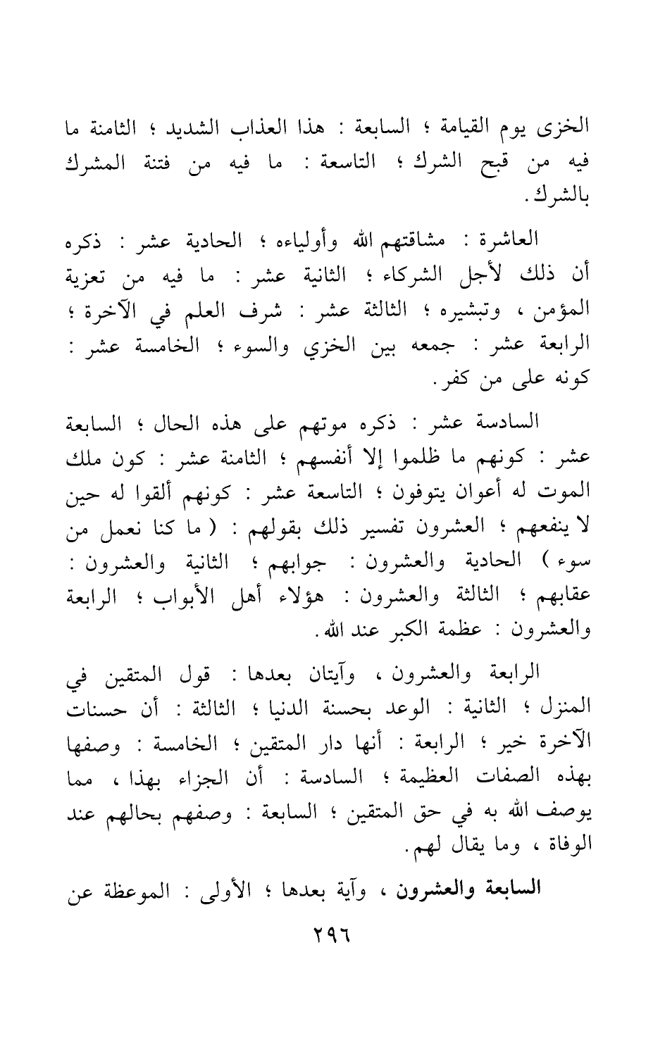 السابعة والعشرون، وآية بعدها: الأولى: الموعظة عن