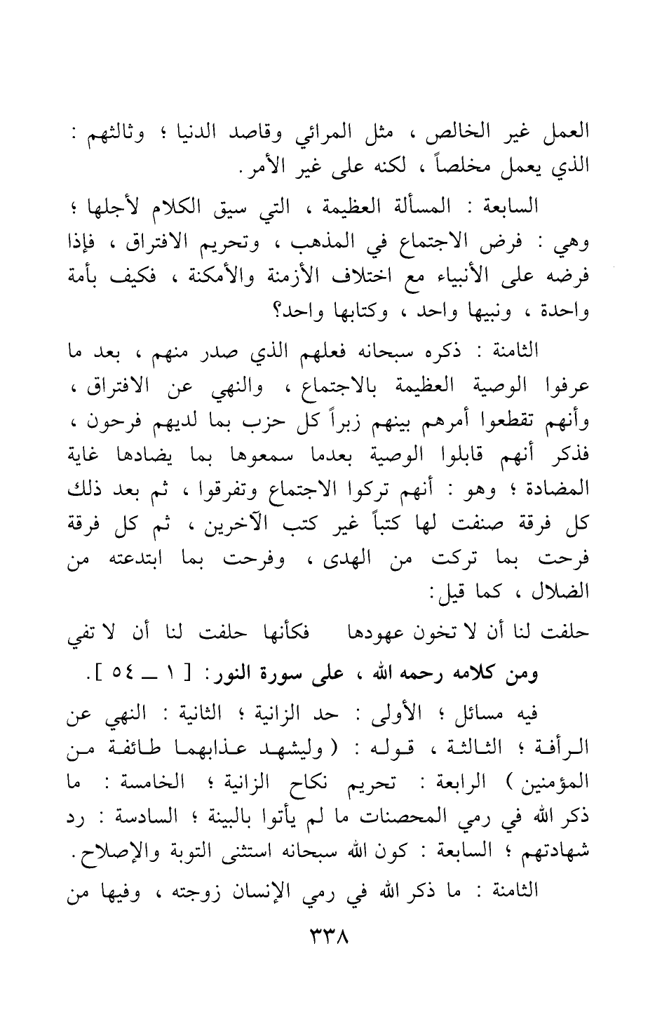 [ما ذكره الشيخ محمد بن عبد الوهاب على سورة النور]