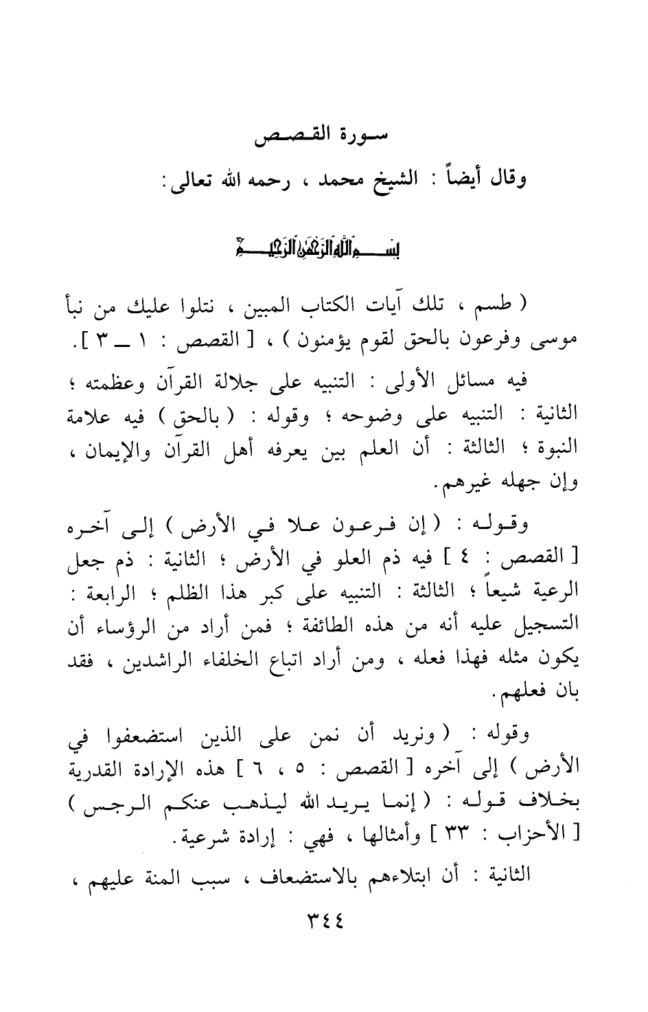 الرابعة: التسجيل عليه أنه من هذه الطائفة; فمن أراد من الرؤساء أن يكون مثله فهذا فعله، ومن أراد اتباع الخلفاء الراشدين، فقد بان فعلهم. وقوله: {وَنُرِيدُ أَنْ نَمُنَّ عَلَى الَّذِينَ اسْتُضْعِفُوا فِي الأَرْضِ} [سورة القصص آية: 5] إلى آخره: هذه الإرادة القدرية بخلاف قوله: {إِنَّمَا يُرِيدُ اللَّهُ لِيُذْهِبَ عَنْكُمُ الرِّجْسَ [سورة الأحزاب آية: 33] وأمثالها، فهي: إرادة شرعية.