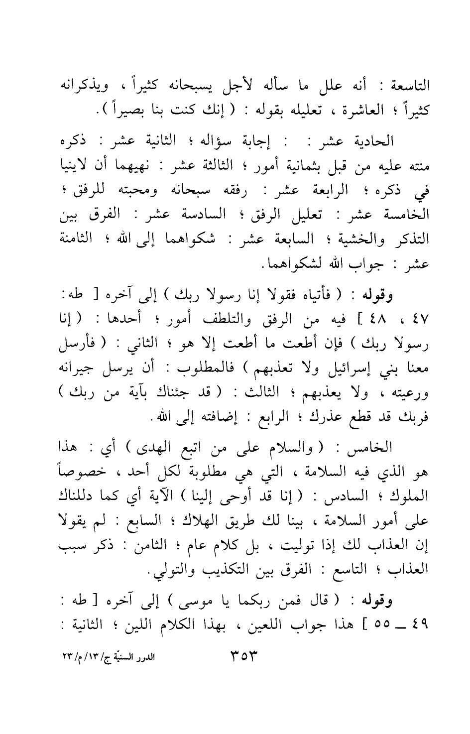 الخامس: {وَالسَّلامُ عَلَى مَنِ اتَّبَعَ الْهُدَى} [سورة طه آية: 47] أي: هذا هو الذي فيه السلامة، التي هي مطلوبة لكل أحد، خصوصا الملوك.