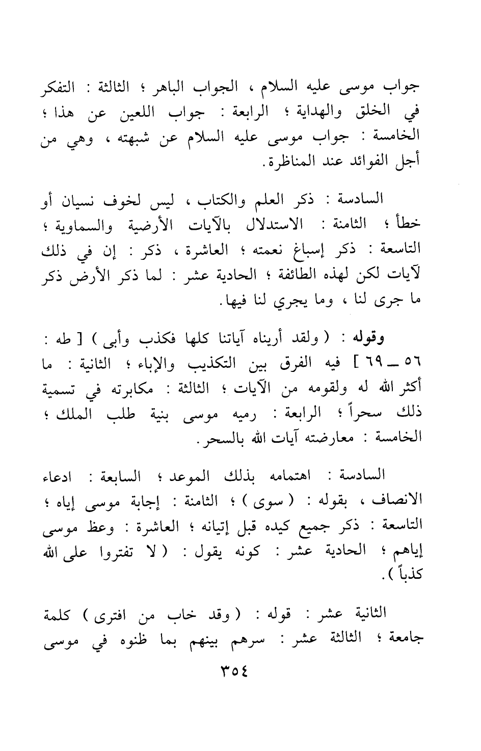 الخامسة: جواب موسى عليه السلام عن شبهته، وهي من أجل الفوائد عند المناظرة.