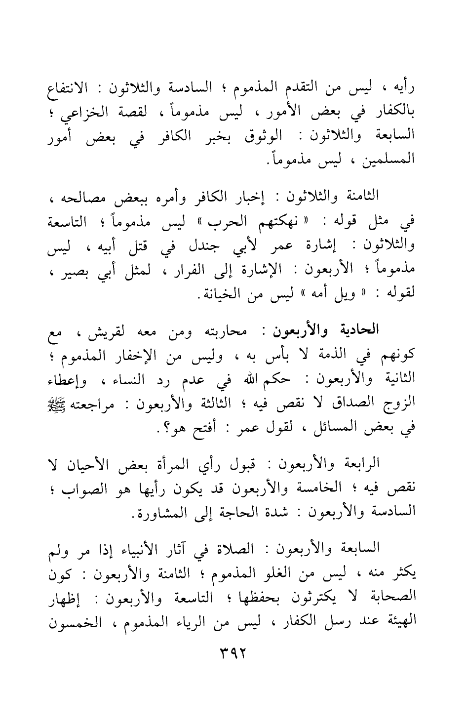 الثامنة والثلاثون: إخبار الكافر وأمره ببعض مصالحه، في مثل قوله: " نهكتهم الحرب " 1 ليس مذموما.