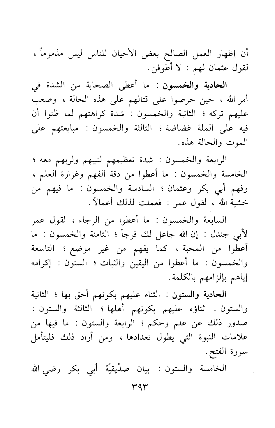 الخامسة والخمسون: ما أعطوا من دقة الفهم وغزارة العلم، وفهم أبي بكر وعثمان.