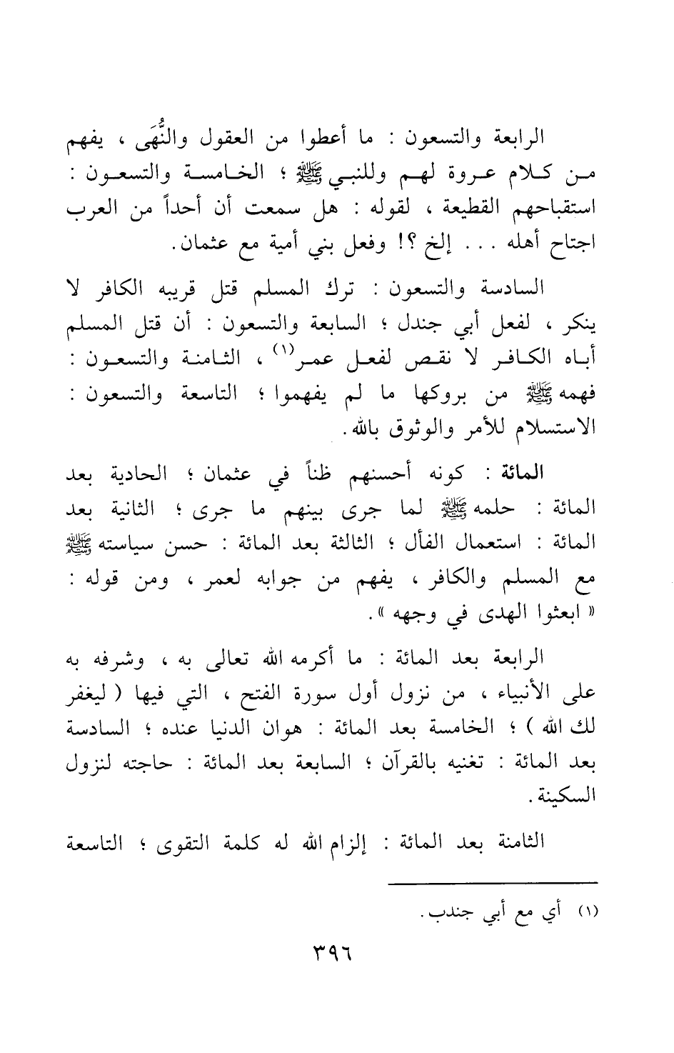 الرابعة والتسعون: ما أعطوا من العقول والنهى، يفهم من كلام عروة لهم وللنبي صلى الله عليه وسلم.
