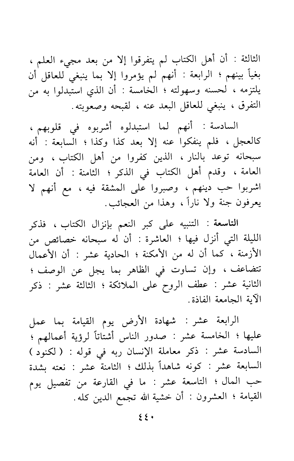 الثالثة: أن أهل الكتاب لم يتفرقوا إلا من بعد مجيء العلم، بغيا بينهم.