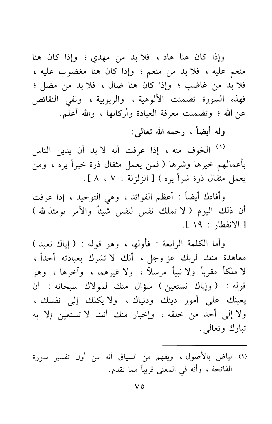 1 بياض بالأصول، ويفهم من السياق أنه من أول تفسير سورة الفاتحة، وأنه في المعنى قريبا مما تقدم.
