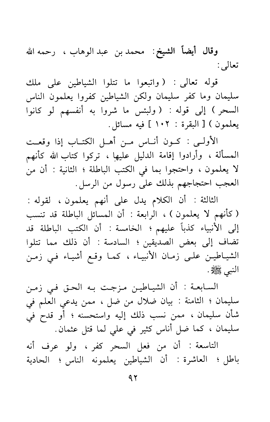 وقال أيضا الشيخ محمد بن عبد الوهاب، رحمه الله تعالى: