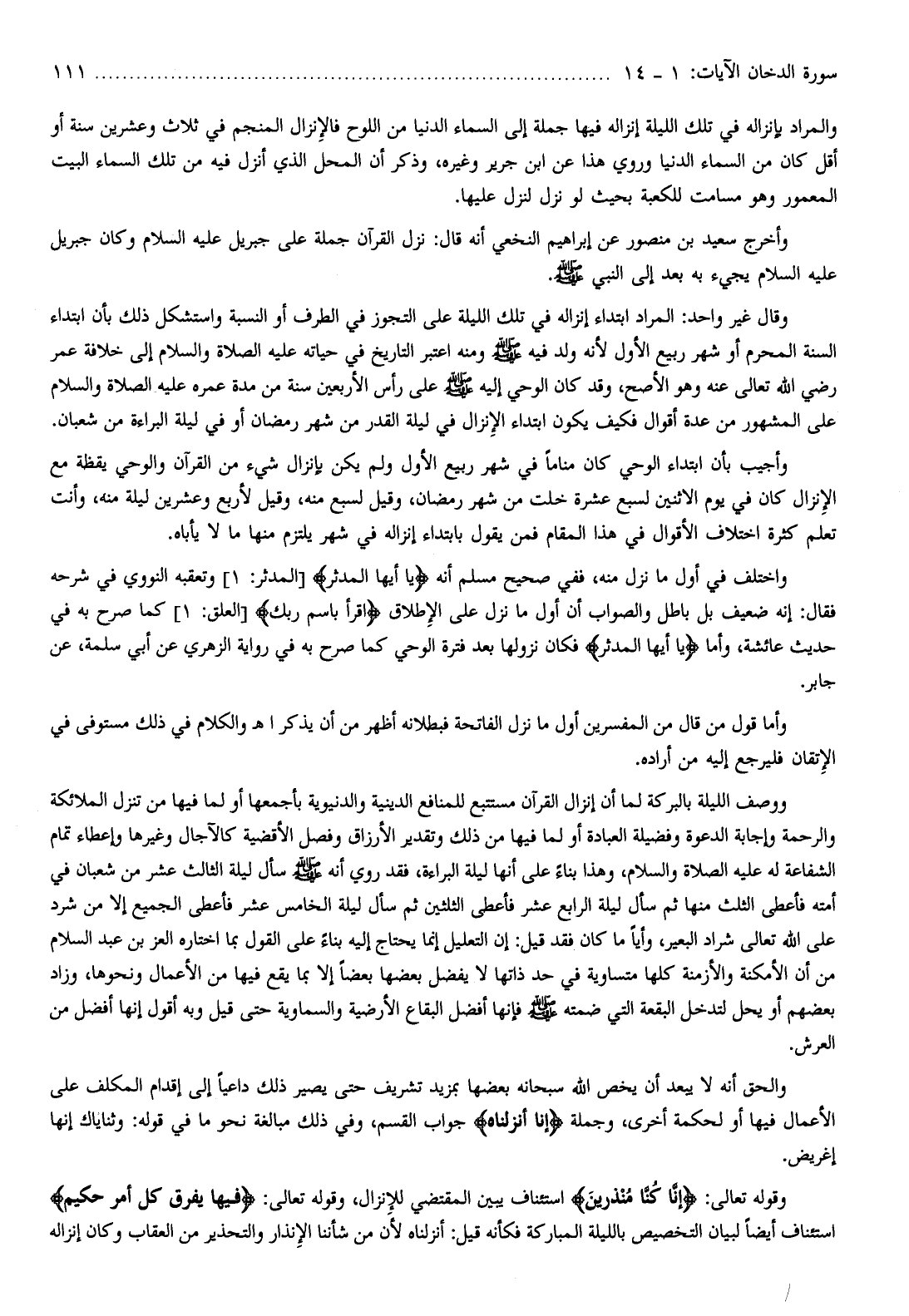 وقال غير واحد: المراد ابتداء إنزاله في تلك الليلة على التجوز في الطرف أو النسبة واستشكل ذلك بأن ابتداء السنة المحرم أو شهر ربيع الأول لأنه ولد فيه صلّى الله عليه وسلّم ومنه اعتبر التاريخ في حياته عليه الصلاة والسلام إلى خلافة عمر رضي الله تعالى عنه وهو الأصح، وقد كان الوحي إليه صلّى الله عليه وسلّم على رأس الأربعين سنة من مدة عمره عليه الصلاة والسلام على المشهور من عدة أقوال فكيف يكون ابتداء الإنزال في ليلة القدر من شهر رمضان أو في ليلة البراءة من شعبان.