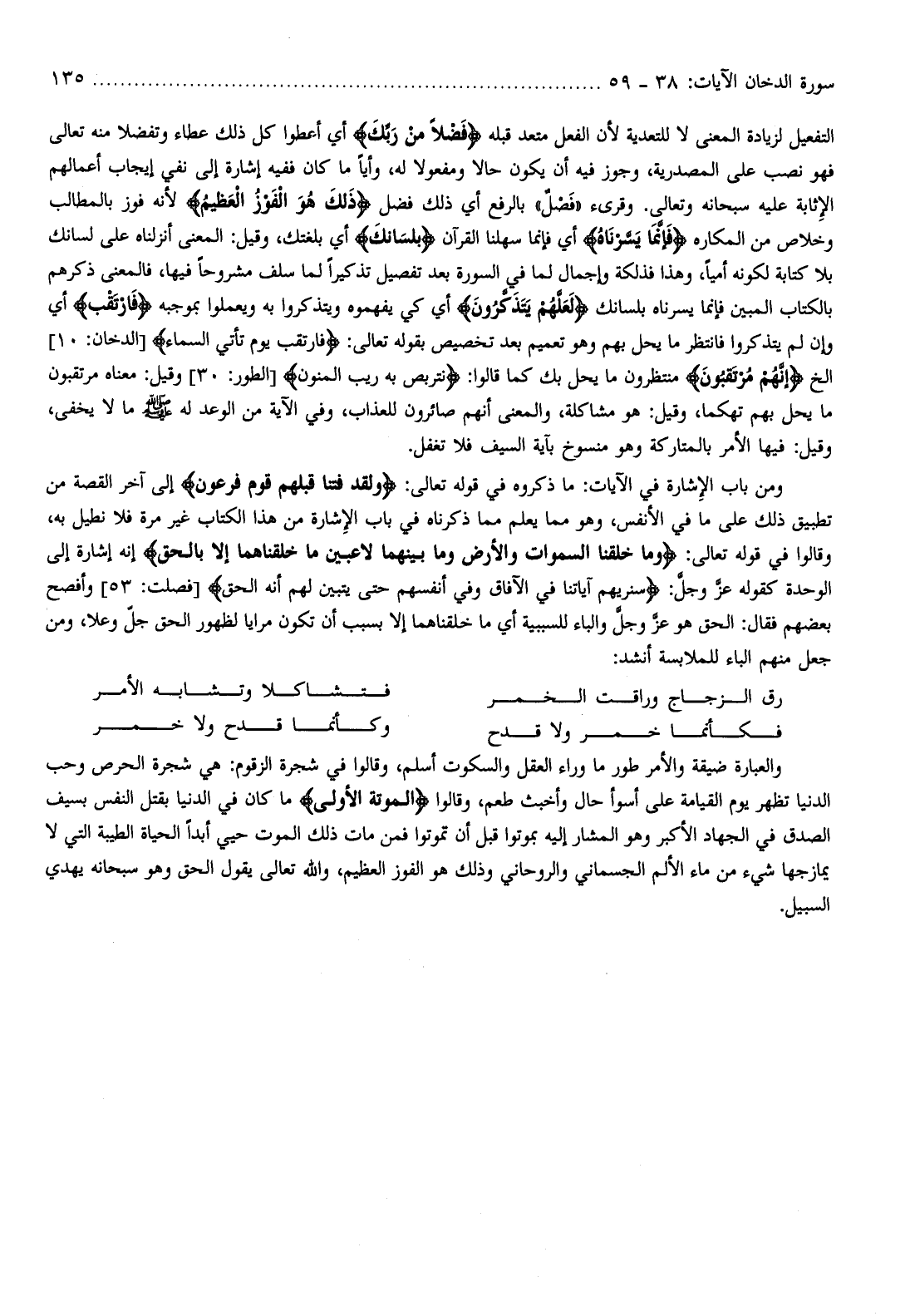 والعبارة ضيقة والأمر طور ما وراء العقل والسكوت أسلم، وقالوا في شجرة الزقوم: هي شجرة الحرص وحب الدنيا تظهر يوم القيامة على أسوأ حال وأخبث طعم، وقالوا الْمَوْتَةَ الْأُولى ما كان في الدنيا بقتل النفس بسيف الصدق في الجهاد الأكبر وهو المشار إليه بموتوا قبل أن تموتوا فمن مات ذلك الموت حيي أبدا الحياة الطيبة التي لا يمازجها شيء من ماء الألم الجسماني والروحاني وذلك هو الفوز العظيم، والله تعالى يقول الحق وهو سبحانه يهدي السبيل.