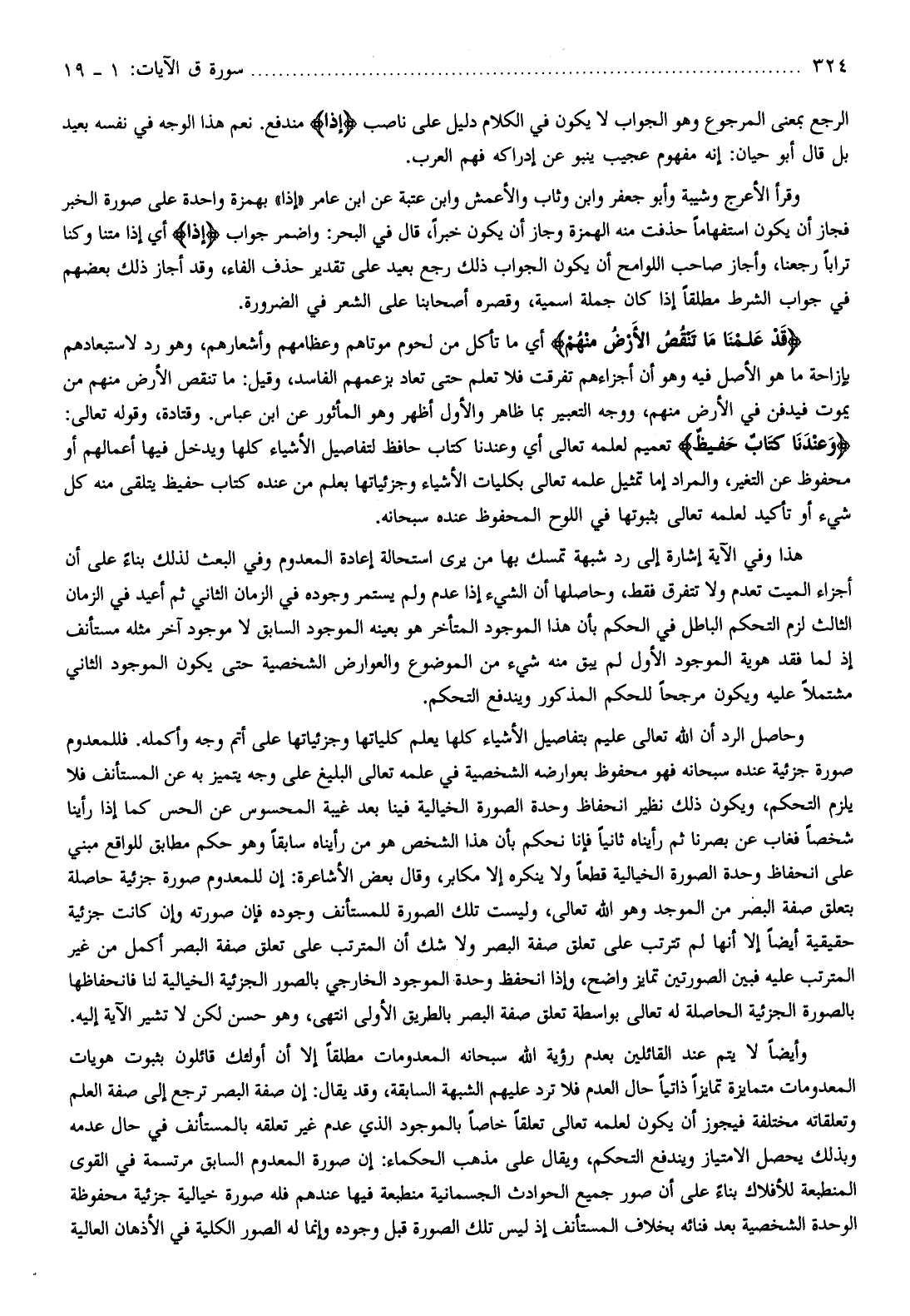 قَدْ عَلِمْنا ما تَنْقُصُ الْأَرْضُ مِنْهُمْ أي ما تأكل من لحوم موتاهم وعظامهم وأشعارهم، وهو رد لاستبعادهم بإزاحة ما هو الأصل فيه وهو أن أجزاءهم تفرقت فلا تعلم حتى تعاد بزعمهم الفاسد، وقيل: ما تنقص الأرض منهم من يموت فيدفن في الأرض منهم، ووجه التعبير بما ظاهر والأول أظهر وهو المأثور عن ابن عباس. وقتادة، وقوله تعالى: