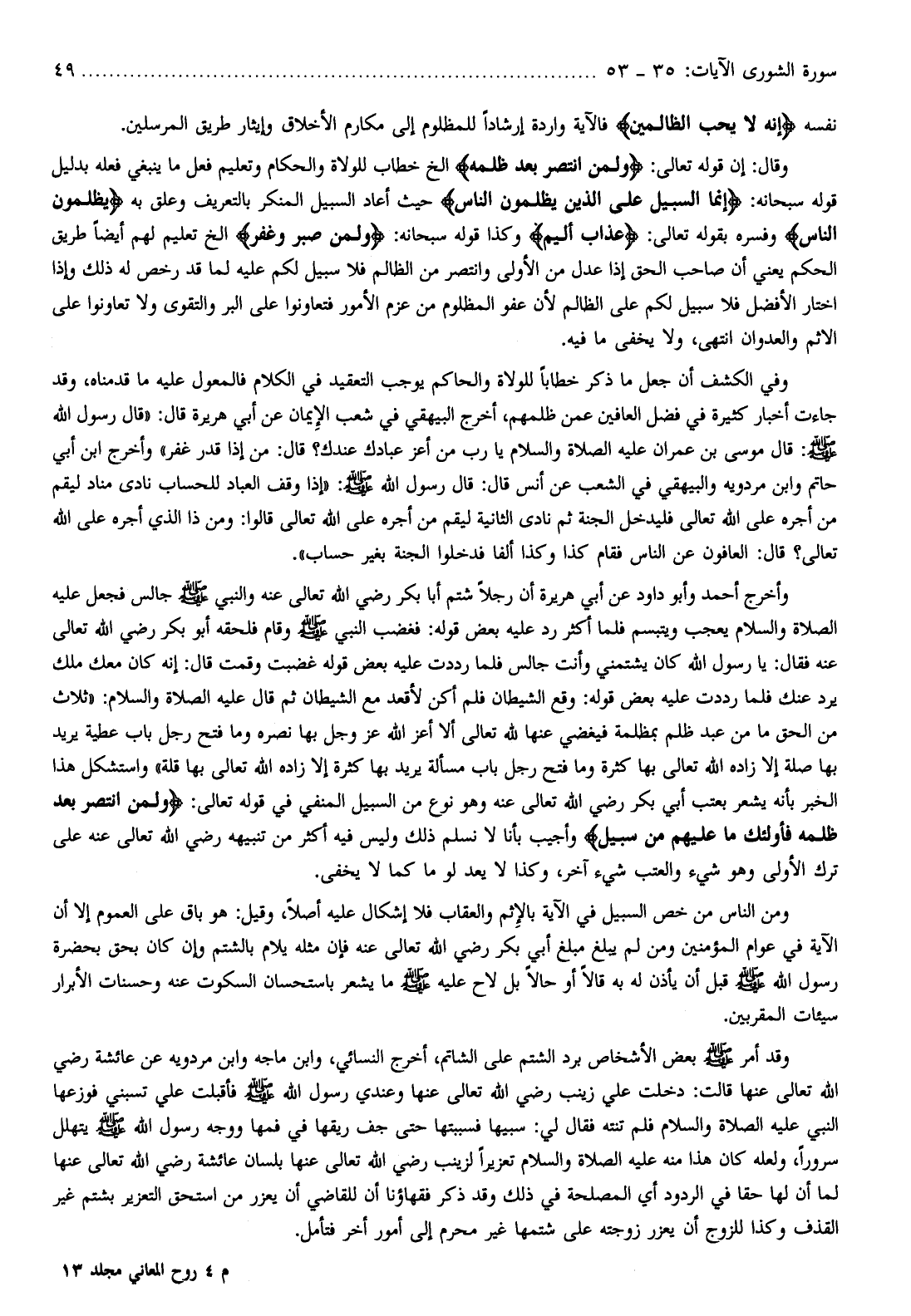 نفسه إِنَّهُ لا يُحِبُّ الظَّالِمِينَ فالآية واردة إرشادا للمظلوم إلى مكارم الأخلاق وإيثار طريق المرسلين.