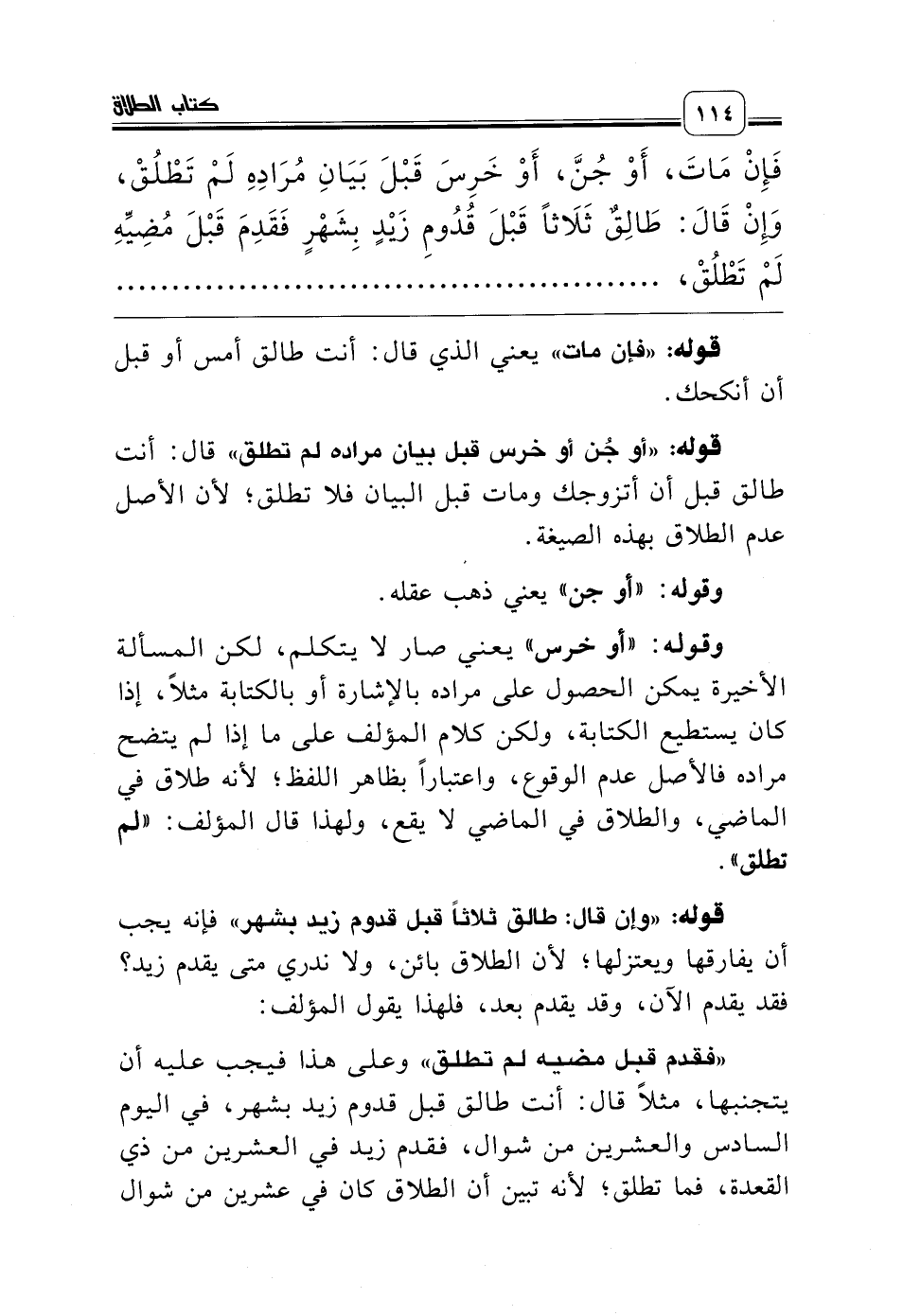 «فقدم قبل مضيه لم تطلق» وعلى هذا فيجب عليه أن يتجنبها، مثلاً قال: أنت طالق قبل قدوم زيد بشهر، في اليوم السادس والعشرين من شوال،