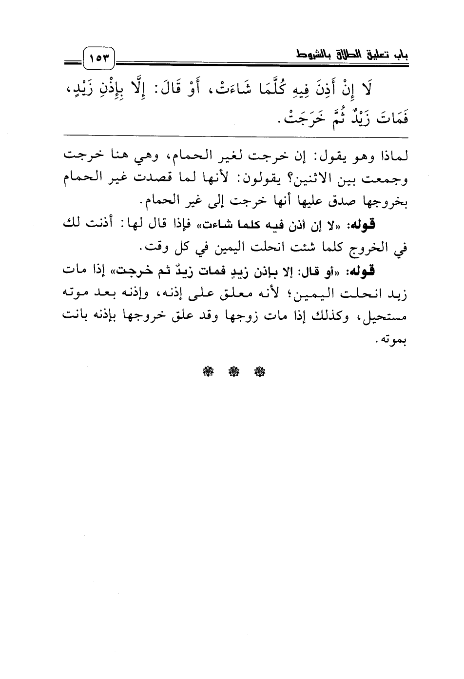 قوله: «أو قال: إلا بإذن زيدٍ فمات زيدٌ ثم خرجت» إذا مات زيد انحلت اليمين؛ لأنه معلق على إذنه، وإذنه بعد موته مستحيل، وكذلك إذا مات زوجها وقد علق خروجها بإذنه بانت بموته.