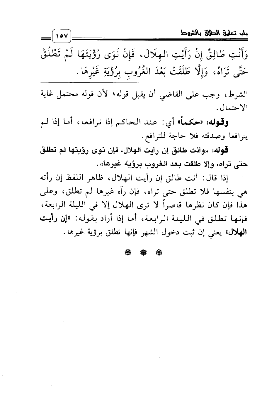 إذا قال: أنت طالق إن رأيت الهلال، ظاهر اللفظ إن رأته هي بنفسها فلا تطلق حتى تراه، فإن رآه غيرها لم تطلق، وعلى هذا فإن كان نظرها قاصراً لا ترى الهلال إلا في الليلة الرابعة، فإنها تطلق في الليلة الرابعة، أما إذا أراد بقوله: «إن رأيت الهلال» يعني إن ثبت دخول الشهر فإنها تطلق برؤية غيرها.