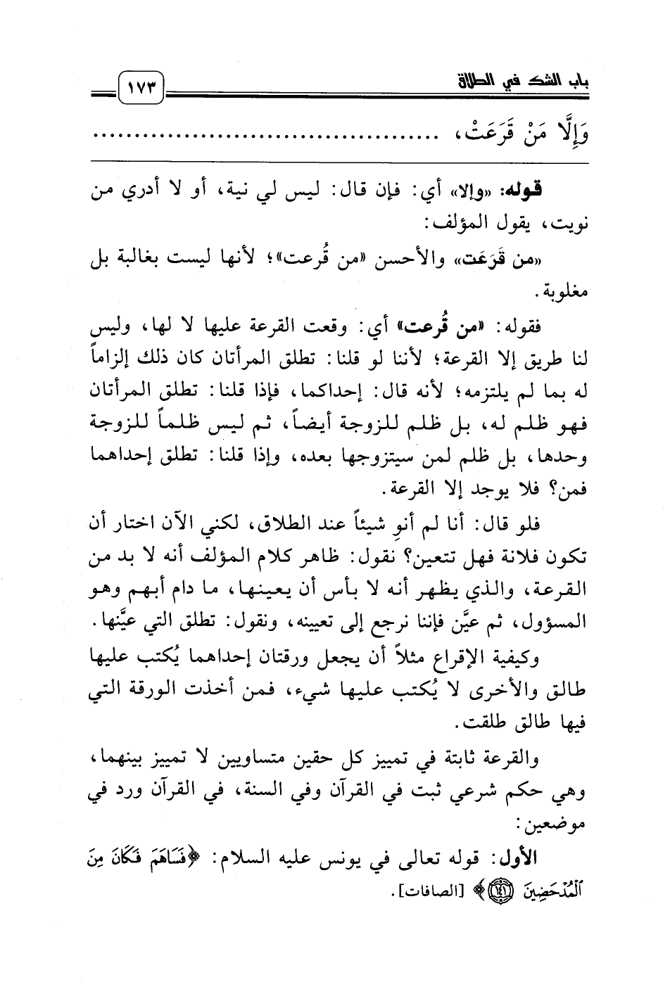 فلو قال: أنا لم أنوِ شيئاً عند الطلاق، لكني الآن اختار أن تكون فلانة فهل تتعين؟ نقول: ظاهر كلام المؤلف أنه لا بد من القرعة، والذي يظهر أنه لا بأس أن يعينها، ما دام أبهم وهو المسؤول، ثم عيَّن فإننا نرجع إلى تعيينه، ونقول: تطلق التي عيَّنها.