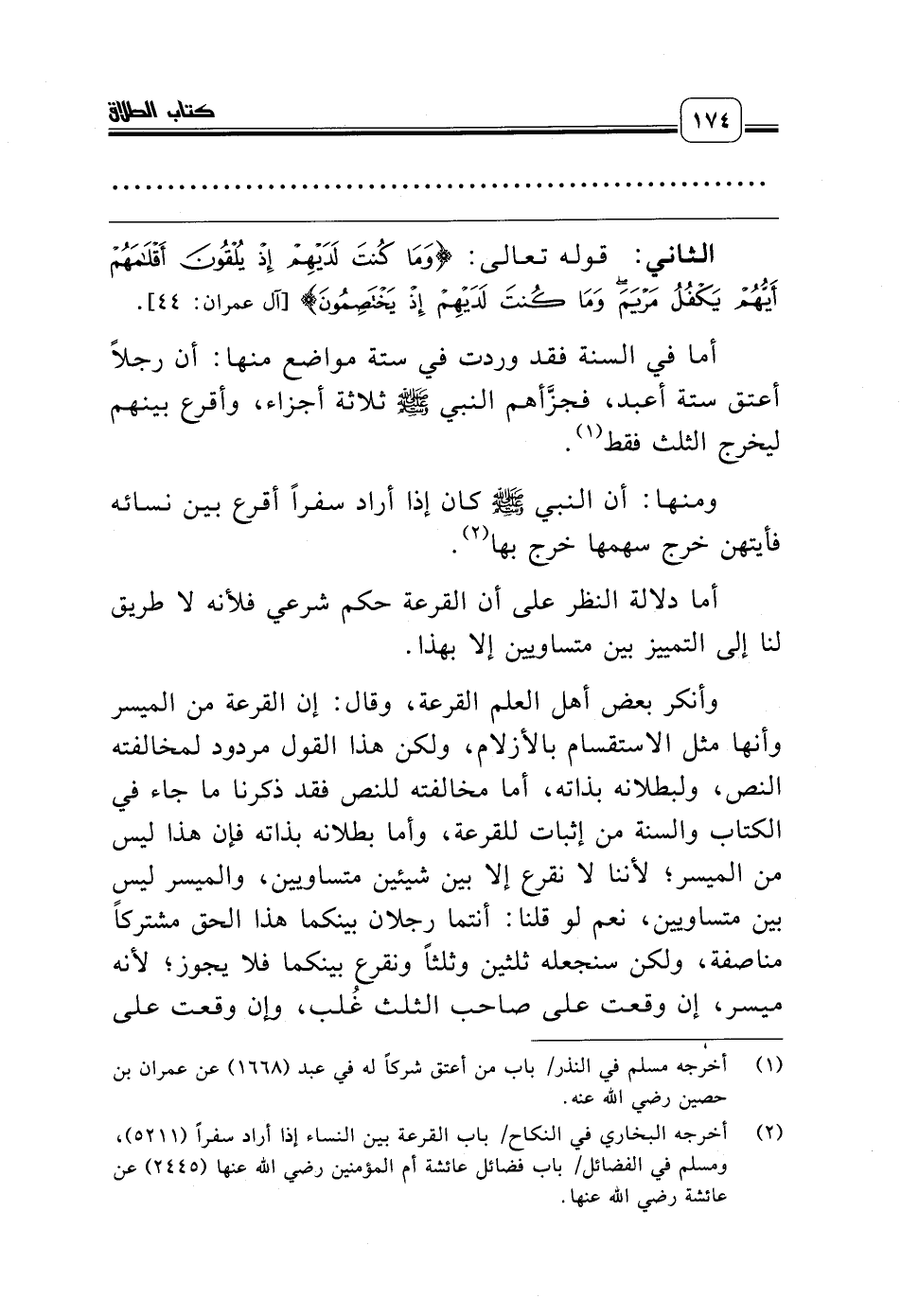 (¬2) أخرجه البخاري في النكاح/ باب القرعة بين النساء إذا أراد سفراً (5211)، ومسلم في الفضائل/ باب فضائل عائشة أم المؤمنين رضي الله عنها (2445) عن عائشة رضي الله عنها.