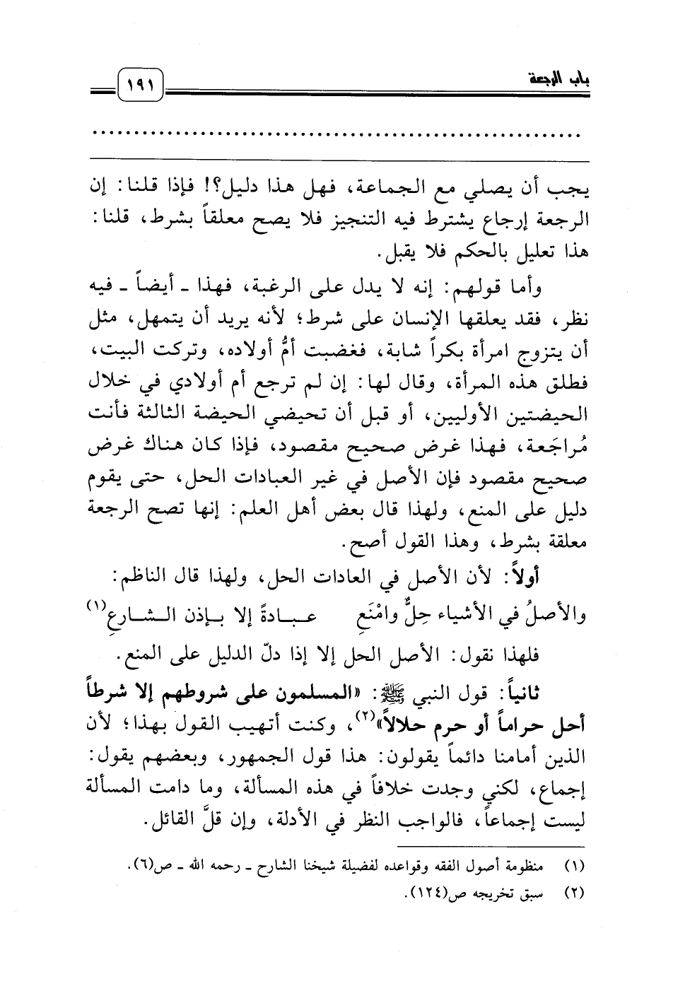 (¬1) منظومة أصول الفقه وقواعده لفضيلة شيخنا الشارح ـ رحمه الله ـ ص (6).