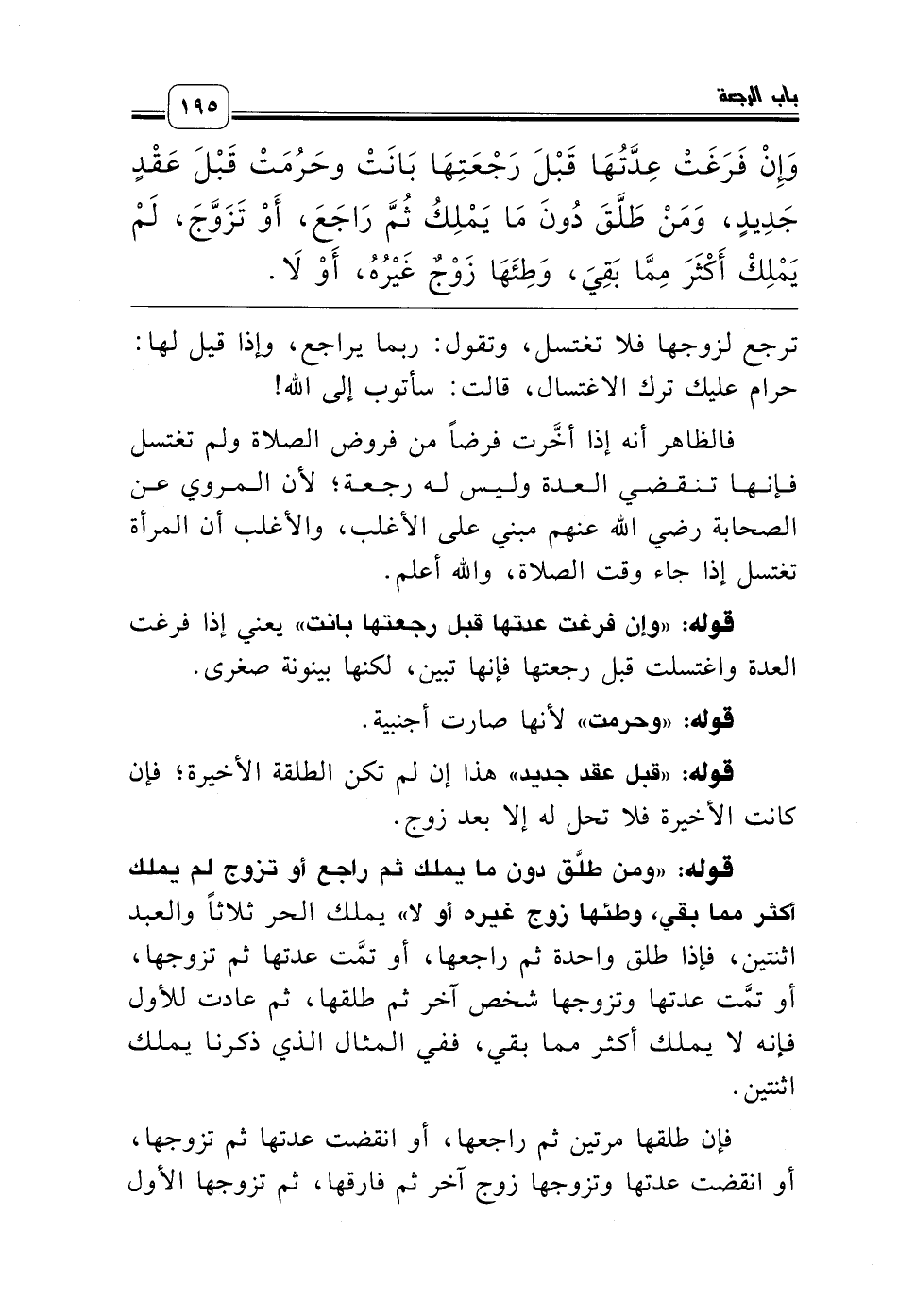 قوله: «وإن فرغت عدتها قبل رجعتها بانت» يعني إذا فرغت العدة واغتسلت قبل رجعتها فإنها تبين، لكنها بينونة صغرى.