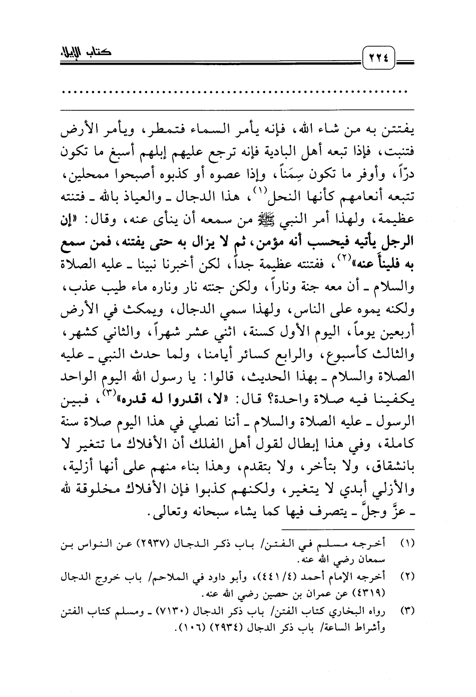 (¬3) رواه البخاري كتاب الفتن/ باب ذكر الدجال (7130) ـ ومسلم كتاب الفتن وأشراط الساعة/ باب ذكر الدجال (2934) (106).