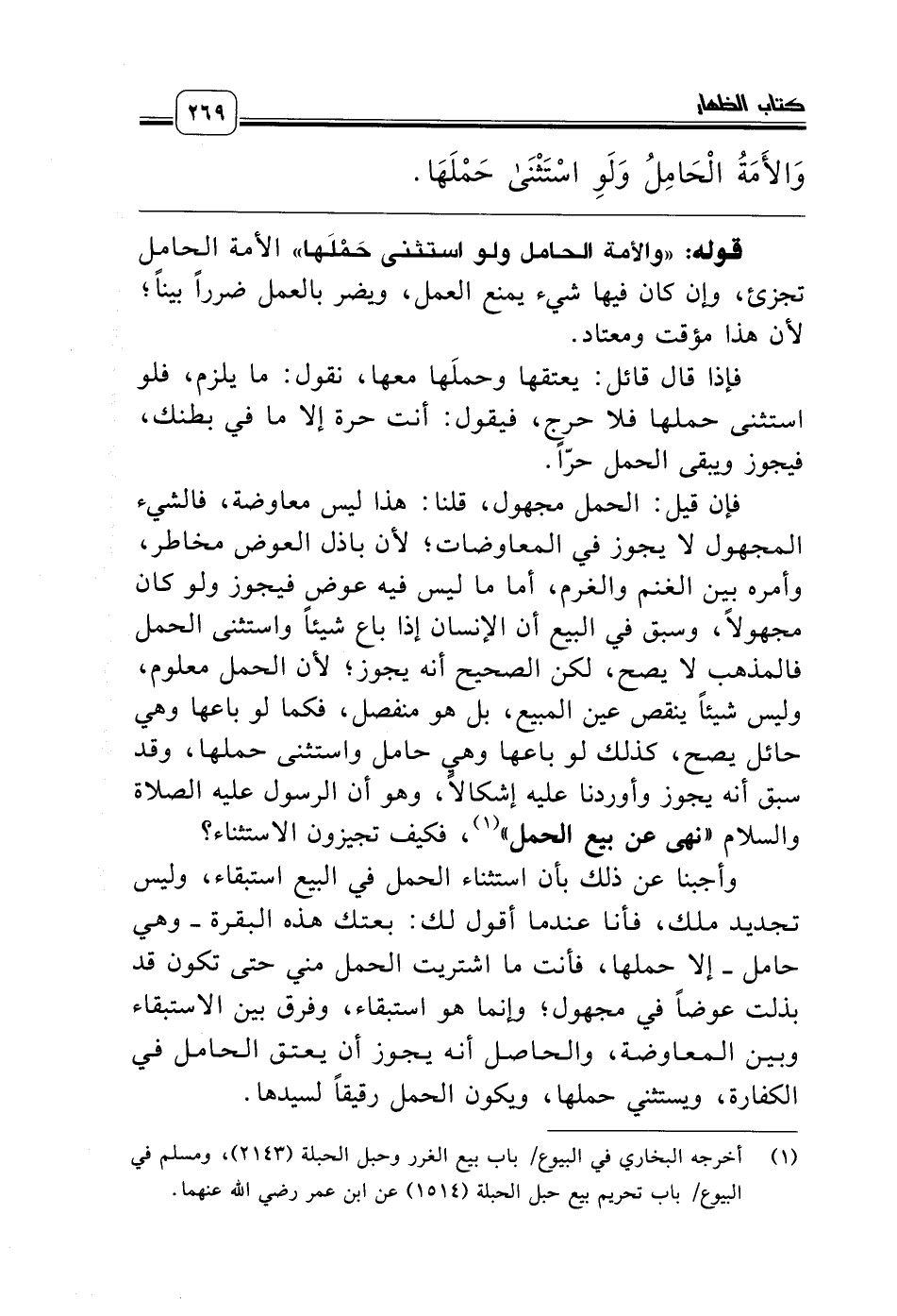 (¬1) أخرجه البخاري في البيوع/ باب بيع الغرر وحبل الحبلة (2143)، ومسلم في البيوع/ باب تحريم بيع حبل الحبلة (1514) عن ابن عمر رضي الله عنهما.