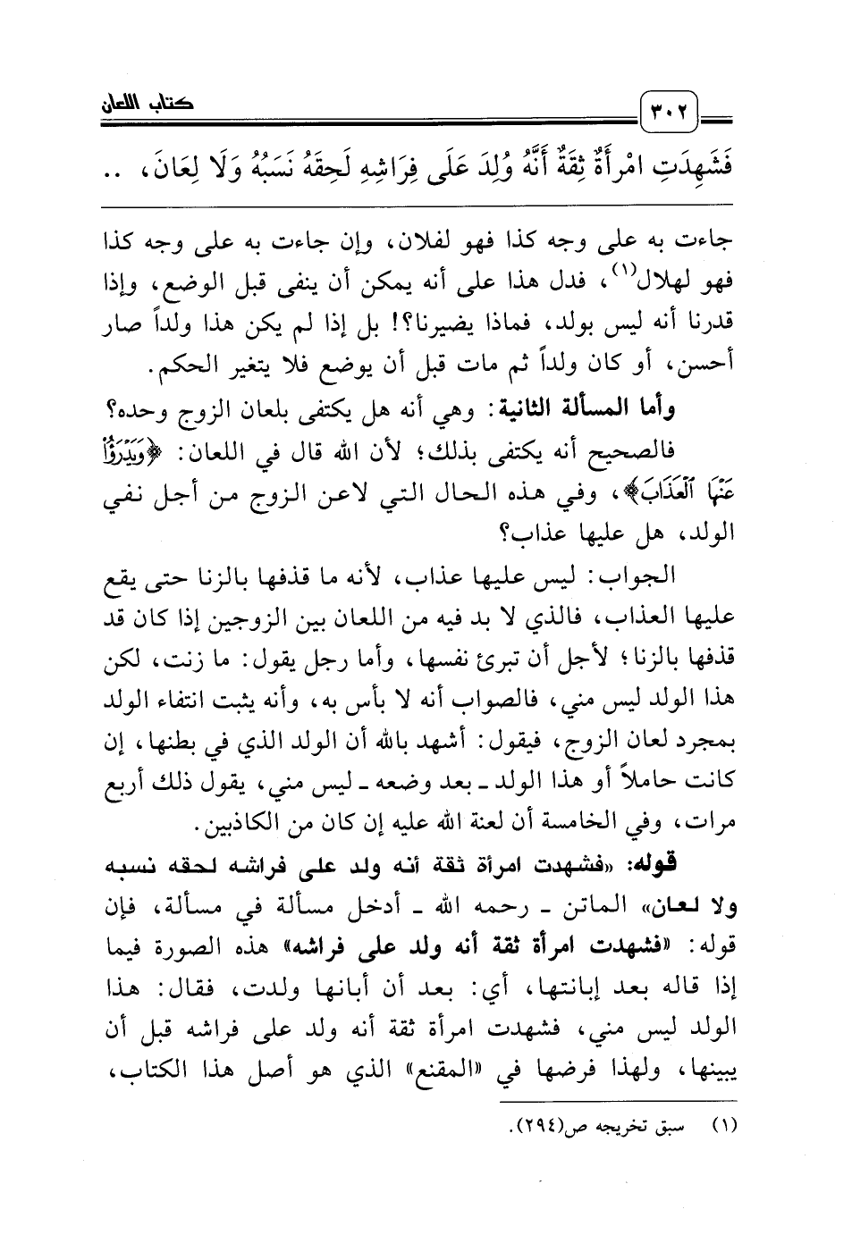قوله: «فشهدت امرأة ثقة أنه ولد على فراشه لحقه نسبه ولا لعان» الماتن ـ رحمه الله ـ أدخل مسألة في مسألة، فإن قوله: «فشهدت امرأة ثقة أنه ولد على فراشه» هذه الصورة فيما إذا قاله بعد إبانتها، أي: بعد أن أبانها ولدت، فقال: هذا الولد ليس مني، فشهدت امرأة ثقة أنه ولد على فراشه قبل أن يبينها، ولهذا فرضها في «المقنع» الذي هو أصل هذا الكتاب،