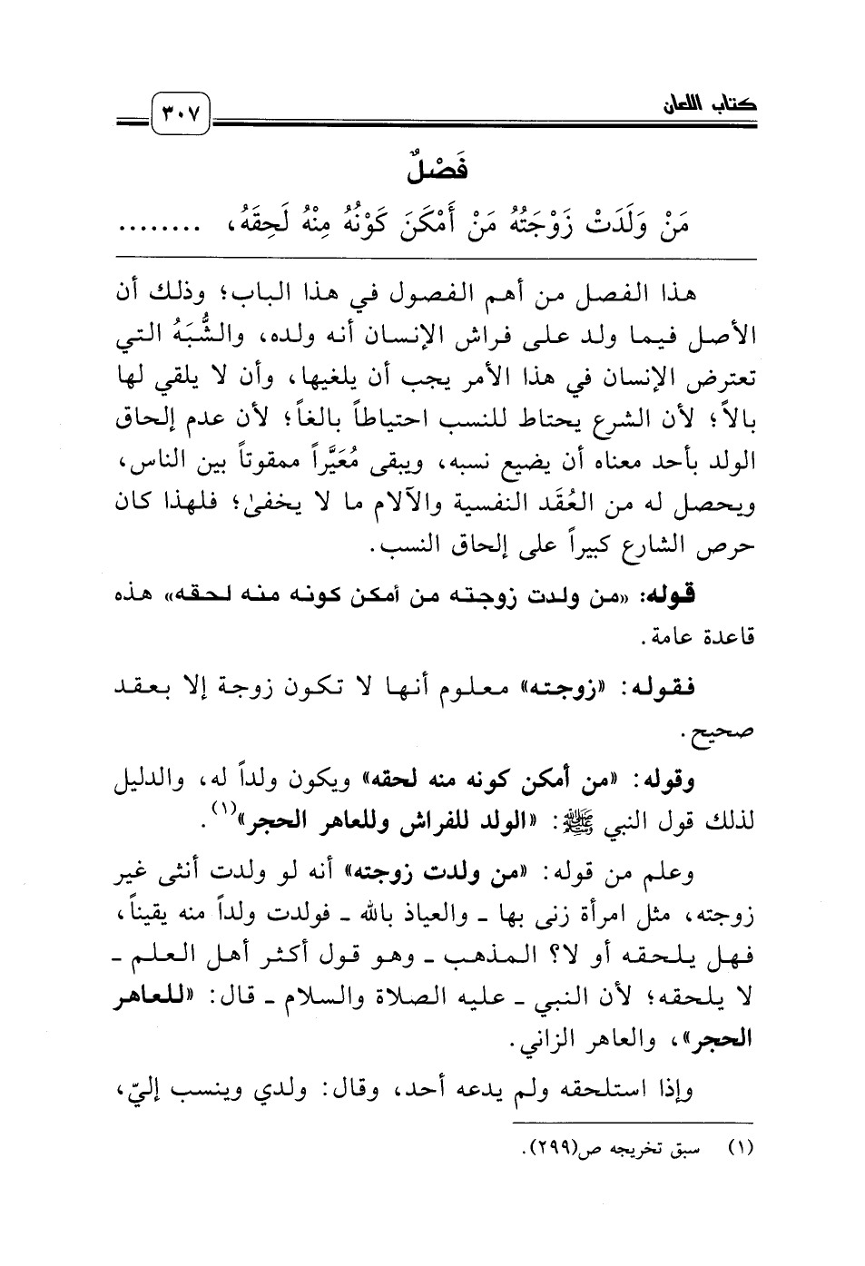مَنْ وَلَدَتْ زَوْجَتُهُ مَنْ أَمْكَنَ كَوْنُهُ مِنْهُ لَحِقَهُ، ........................