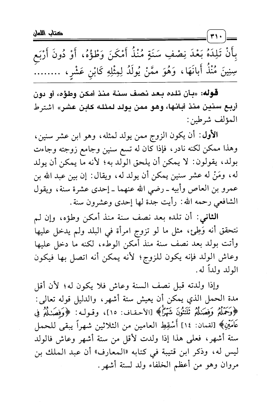 الأول: أن يكون الزوج ممن يولد لمثله، وهو ابن عشر سنين، وهذا ممكن لكنه نادر، فإذا كان له تسع سنين وجامع زوجته وجاءت بولد، يقولون: لا يمكن أن يلحق الولد به؛ لأنه ما يمكن أن يولد له، ومَنْ له عشر سنين يمكن أن يولد له، ويقال: إن بين عبد الله بن عمرو بن العاص وأبيه ـ رضي الله عنهما ـ إحدى عشرة سنة، ويقول الشافعي رحمه الله: رأيت جدة لها إحدى وعشرون سنة.